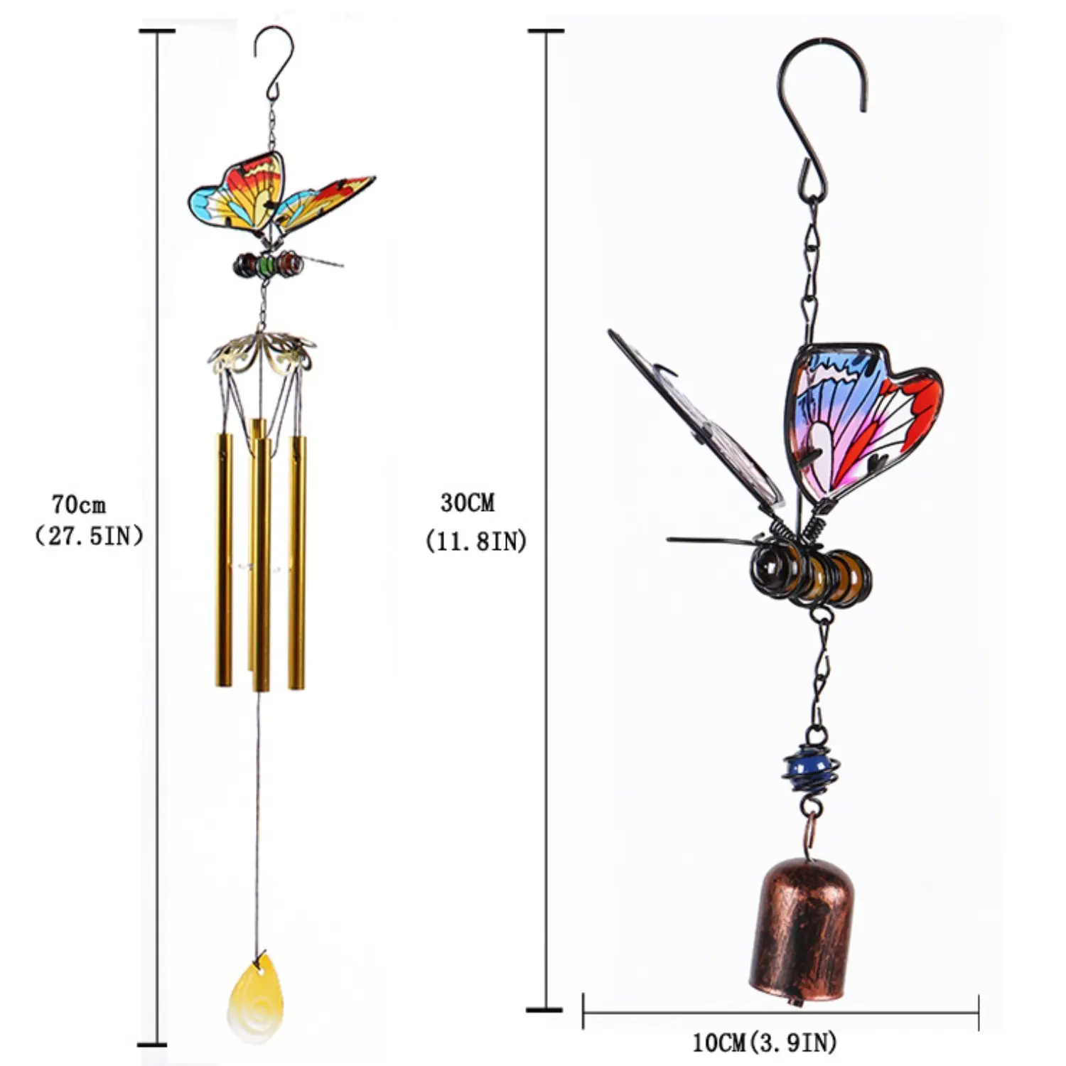 Butterfly Wind Chime — Creative Metal & Glass Painted Iron Art Hanging Ornament