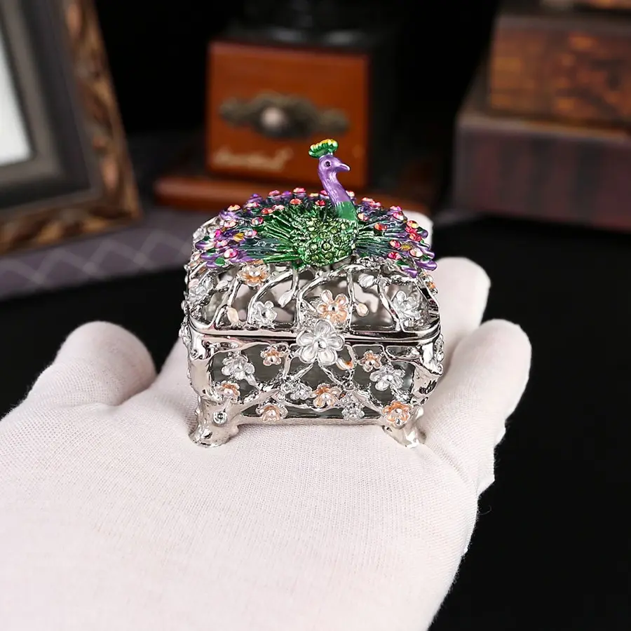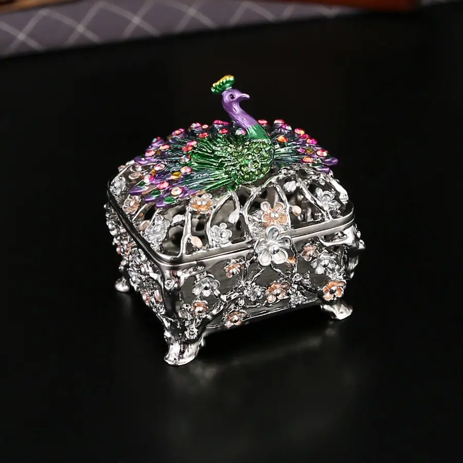Elegant Silver Color Peacock Jewelry Box, Intricate Lace Design, Vanity Organizer, Trendy Oriental Luxury Decor, Perfect for Accessories Storage
