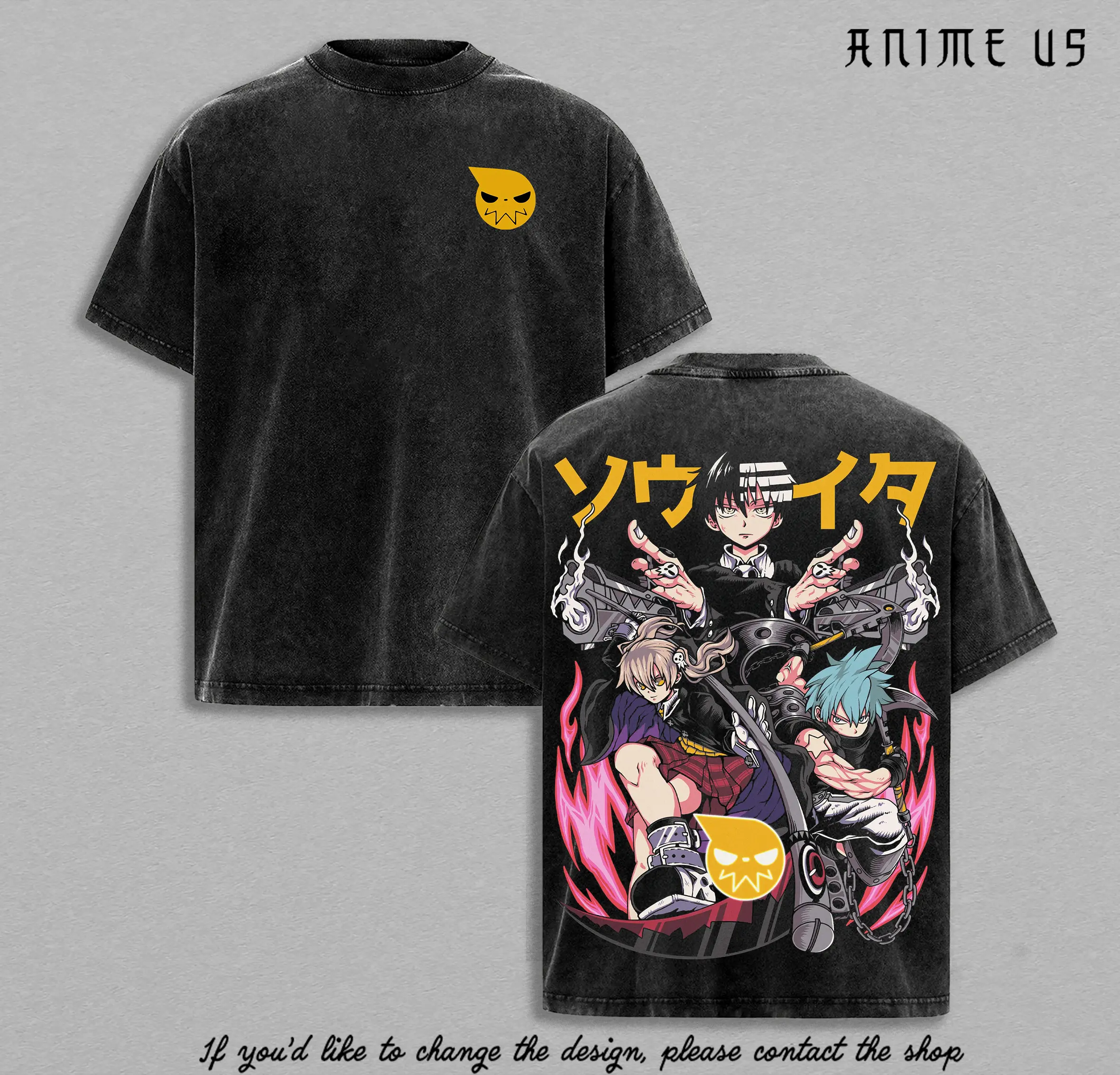 Maka Albarn Soul Evans Death the Kid Soul Eater Anime Vintage Washed Oversized Graphic Tee Weapon Meister Streetwear Shirt
