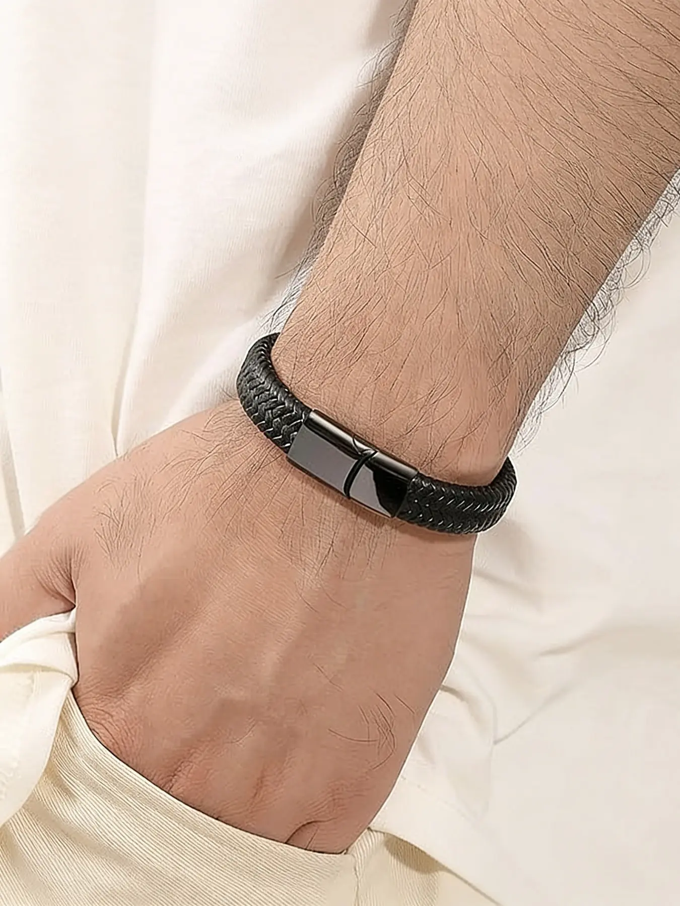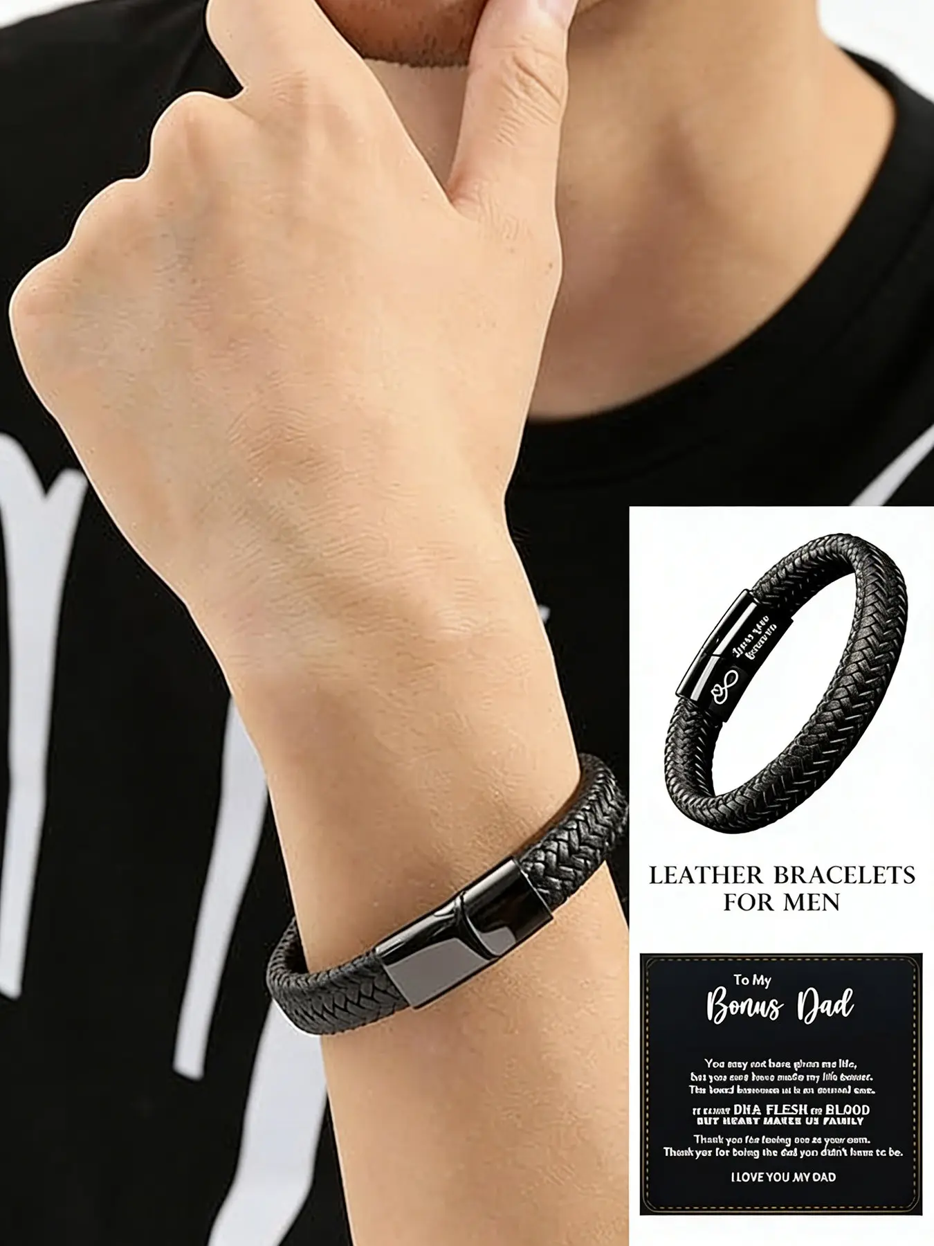 6-Piece Leather Bracelets for Men, Stackable Retro Bangles with Stainless Steel Clasp, Perfect Family Gift Set with Sentimental Cards
