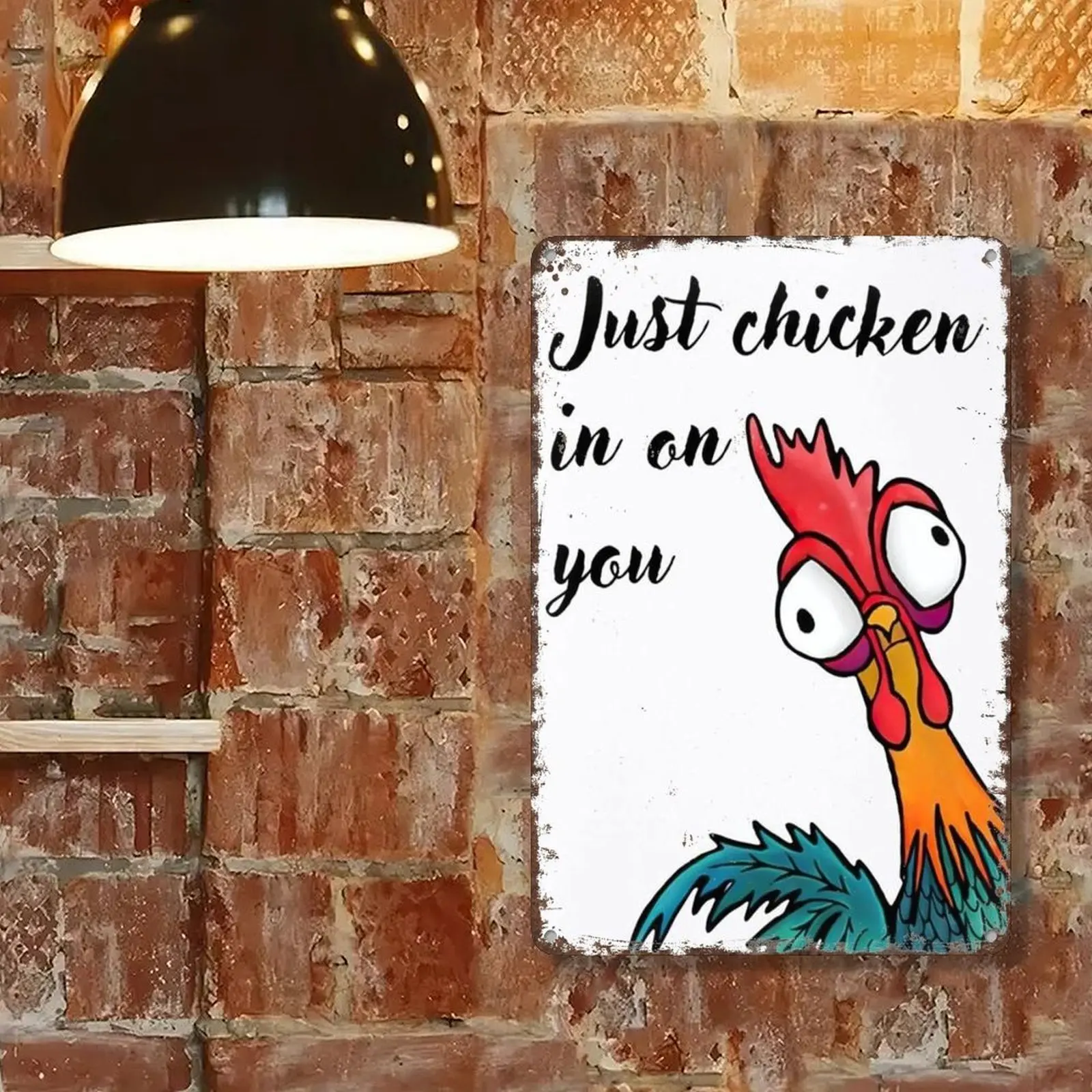 🐓 Just Chicken In On You Funny Rooster 8x12 Inch Retro Tin Wall Decor