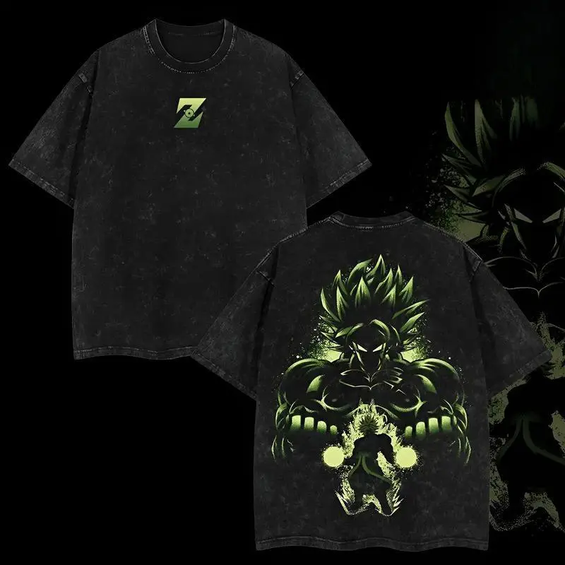 Saiyan Broly Green Z Washed T Shirt Dragon Ball Broly Character Unisex Top Wear 100 Percent Cotton Classic Cut Comfortable Ribbed Collar Casual Streetwear Tee For Anime Fans
