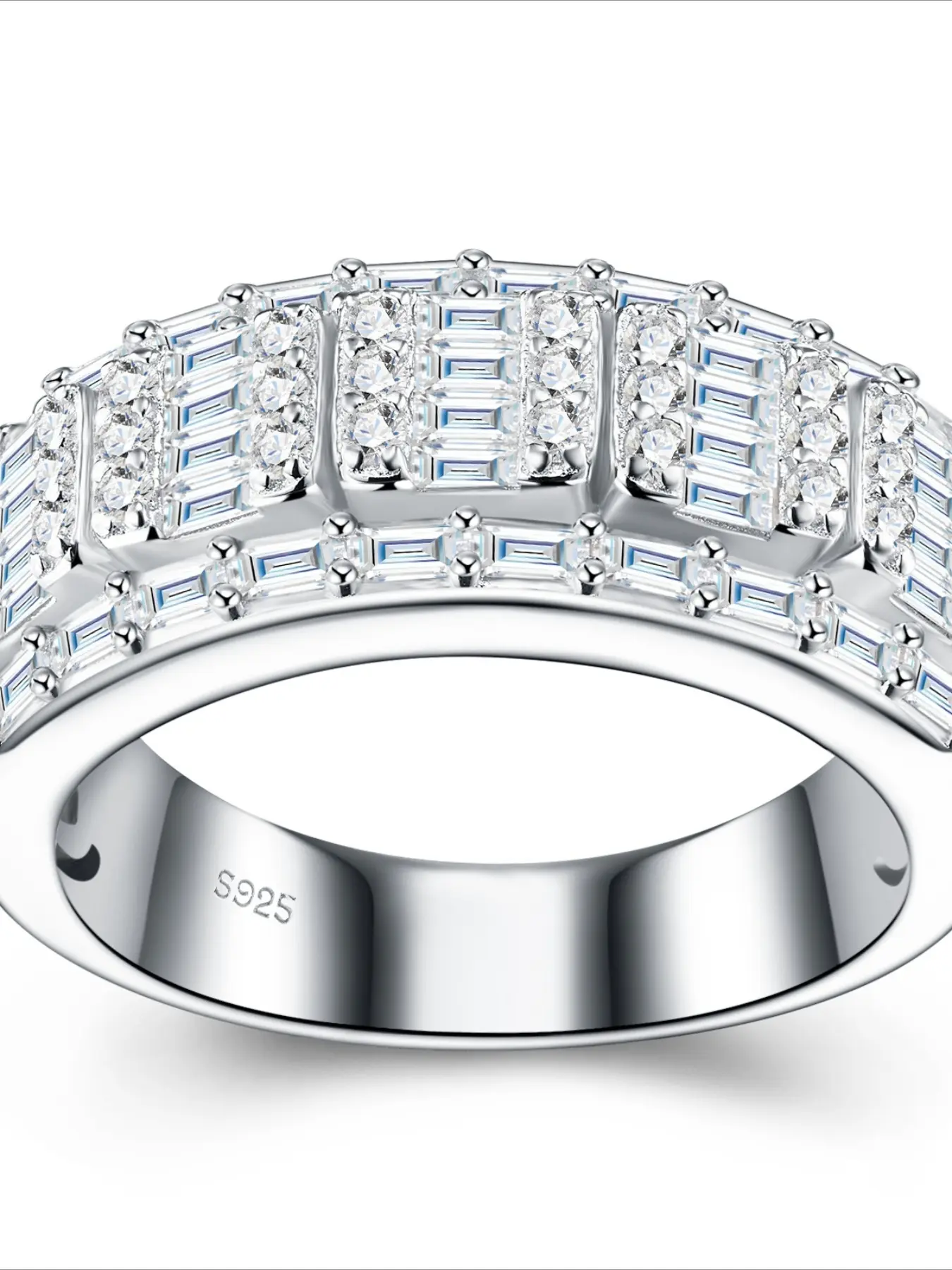 Father's Day Mother's Day gift, set with ice-cold full diamond men's ring, luxury atmosphere, trend, male and female couples engagement ring ring, simple