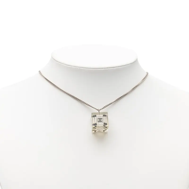 Pre-owned CHANEL Plastic Small Leather Goods Coco Mark Square Pendant Necklace