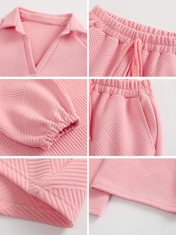 Discover the perfect blend of style, comfort, and versatility. This chevron jacquard knit loungewear set is designed for the modern woman. Ideal for errands, working from home, or relaxing, it delivers effortless chic.