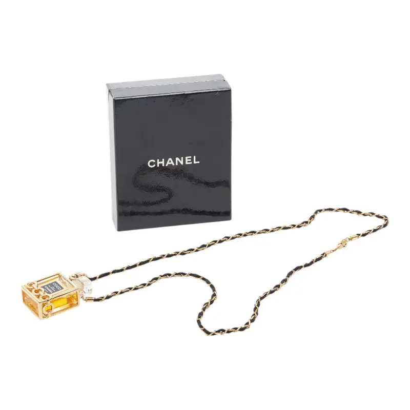 Pre-owned CHANEL Brass Small Leather Goods Perfume Bottle Necklace