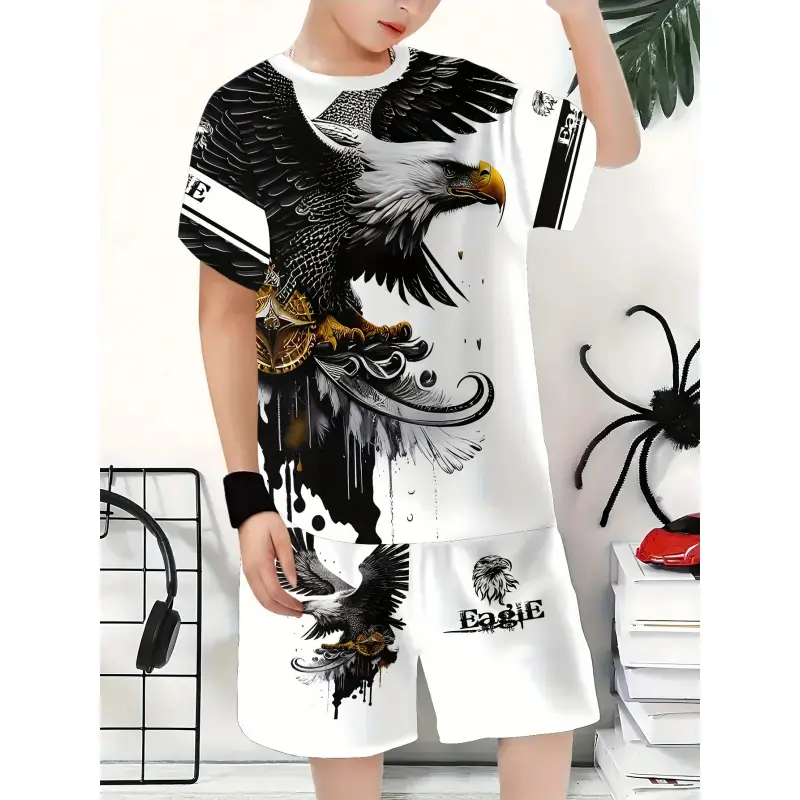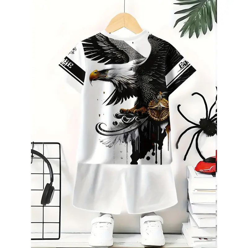 ✅Fashionable Eagle Pattern Design: Wear this T-shirt to boldly showcase an eye-catching style.It's very fashionable without being overly flashy, adding a fun and adventurous vibe to his wardrobe.Perfect for boys who like to stand out!
