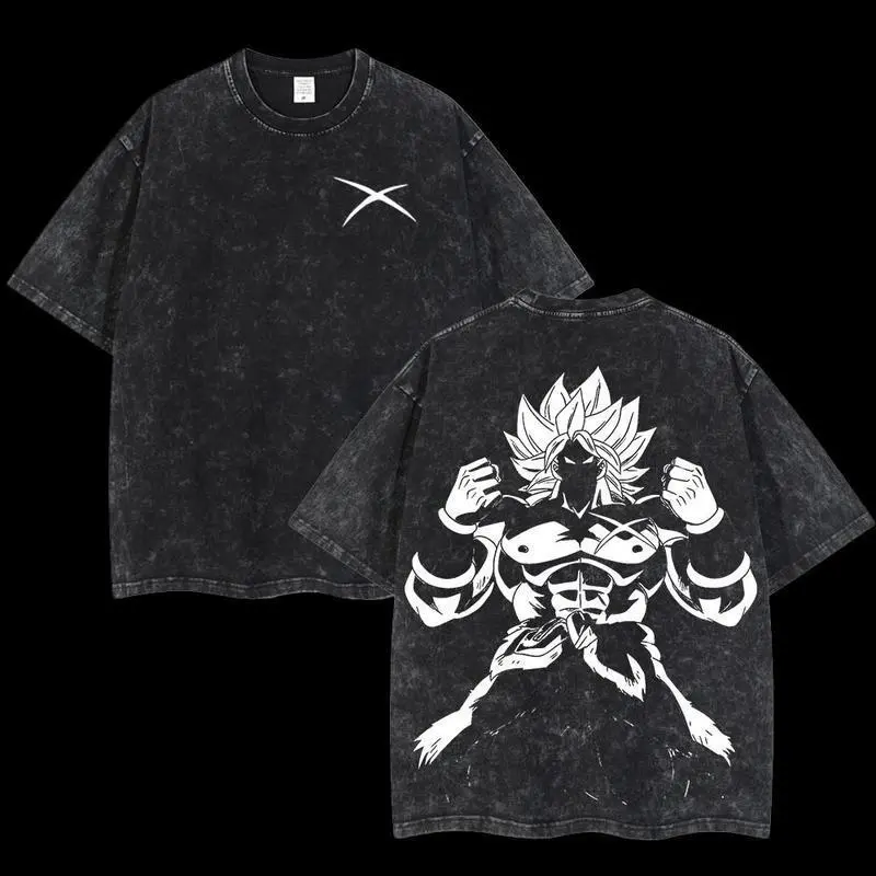 Retro Heavy Limited Broly The Legendary Super Saiyan Dragon Ball Anime Double Printed Vintage Oversized Washed Tee Unisex Acid Washed Lightweight Cotton T Shirt Hoodies Sweater Casual Streetwear Top Gift For Anime Fans And Lovers