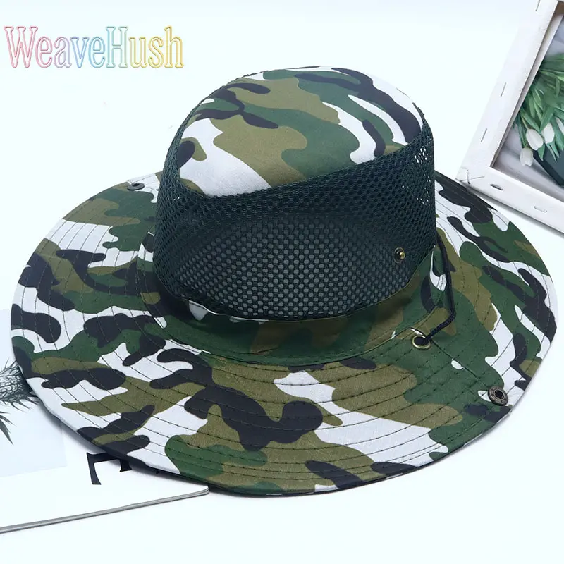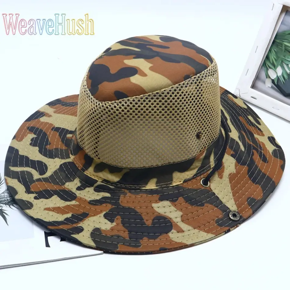 Camouflage Bucket Hat for Men, Wide Brim Outdoor Sun Shade Hat, Breathable Military Style Fishing & Hiking Cap, Ventilated Mesh Camo Boonie Hat for Spring Summer Travel, Camping, Safari & Outdoor Activities