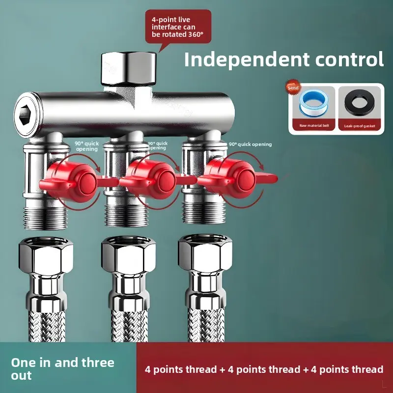 【Three Outlets】: Features one inlet and three outlets, providing multiple connection options for various needs.
