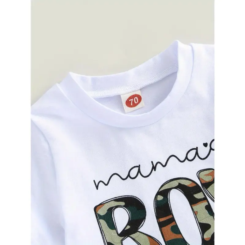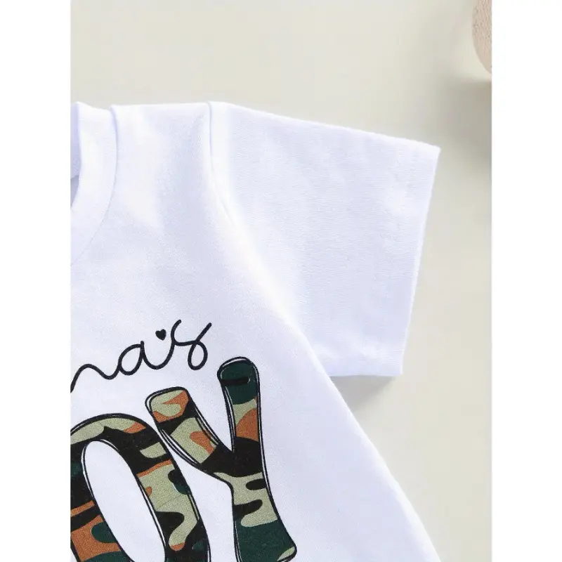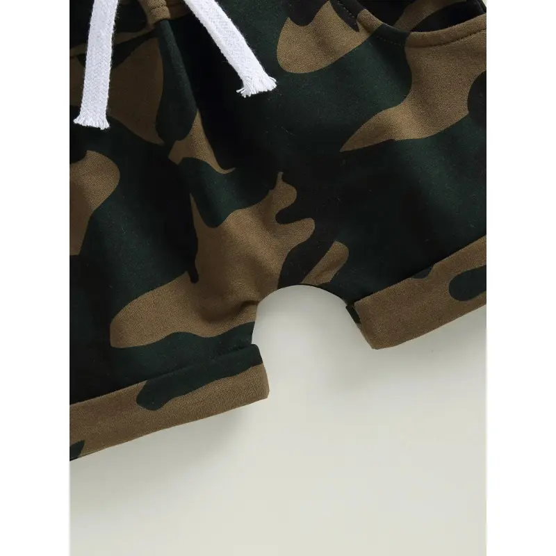 Shorts set for boys aged 0-3 years, short-sleeved letter-printed T-shirt paired with camouflage shorts, summer outdoor clothing
