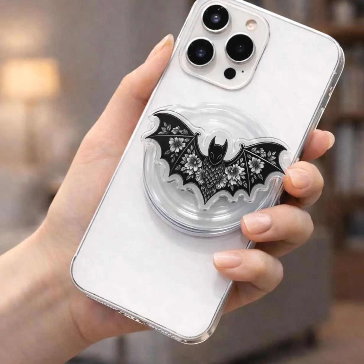 Gothic Bat Phone Grip MagSafe, Floral Bat Aesthetic Phone Holder, Dark Academia Grip Stand, Witchy Phone Accessory