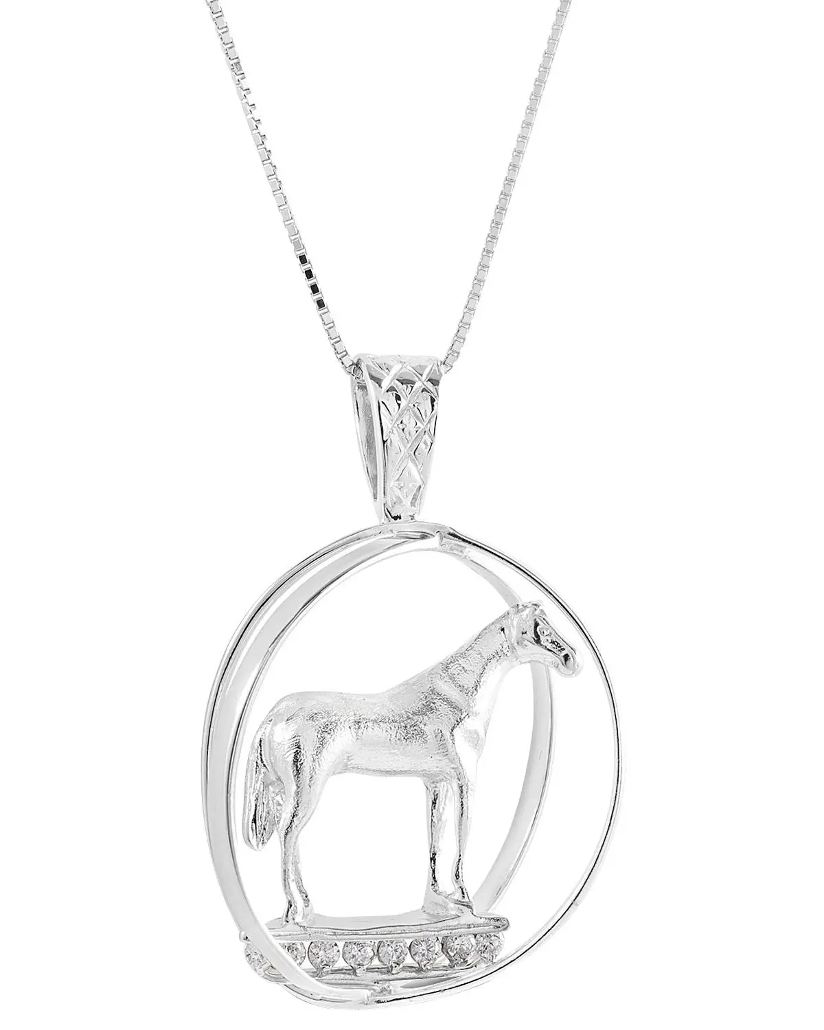 Sterling silver / 14K gold. Lobster clap closure. World trophy pendant enhanced with clear cubic zirconia. Adjustable 16"-18" chain.