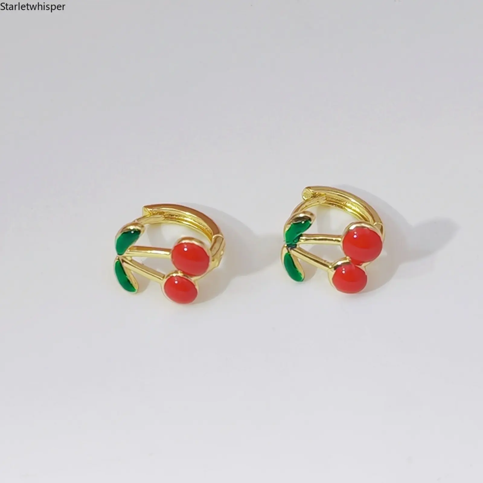 18K Gold Plated Cherry & Strawberry Enamel Hoop Earrings for Women, 3D Stereo Design, Cute Trendy Y2K Aesthetic Jewelry, Lightweight & All-Match for Daily Wear, Dates, Parties & Gift Giving