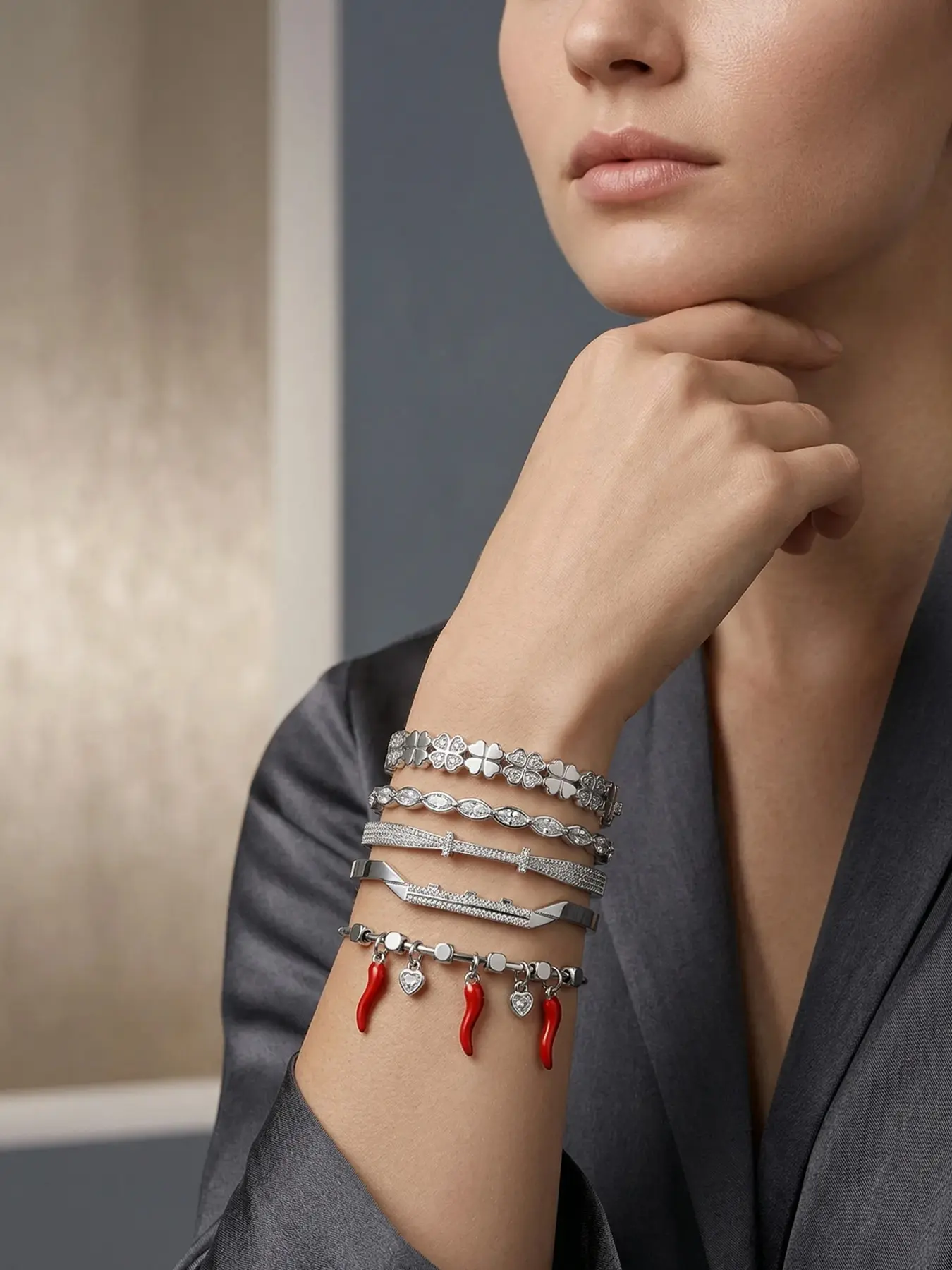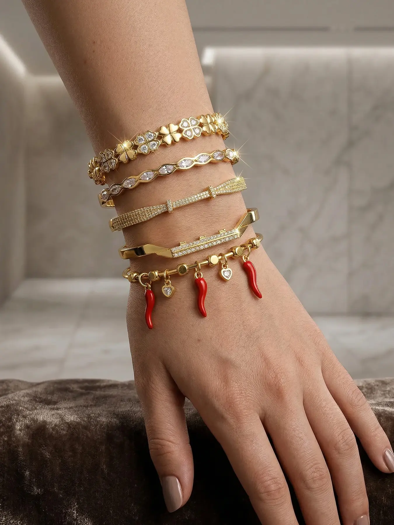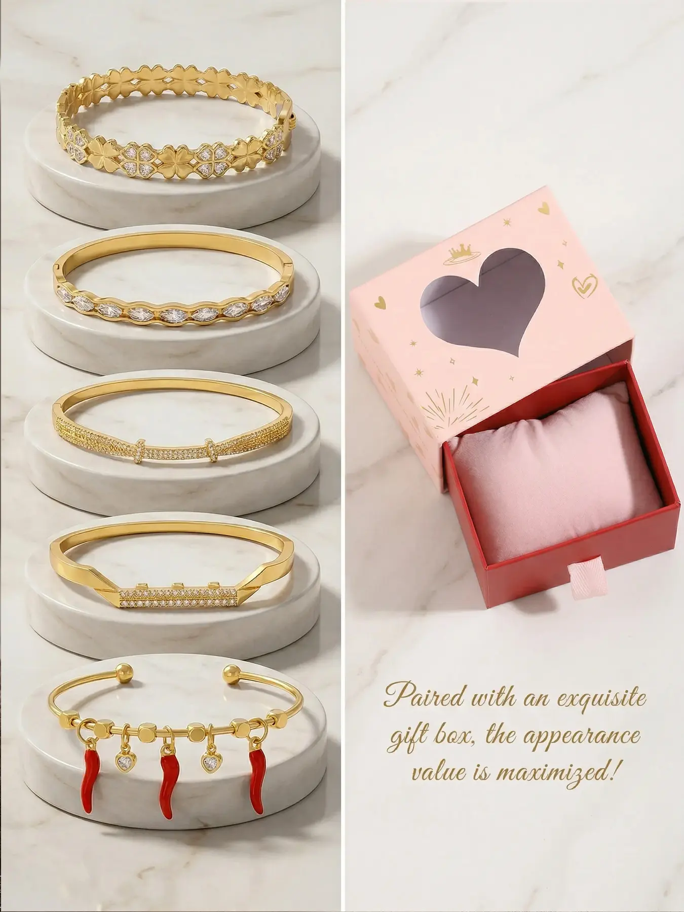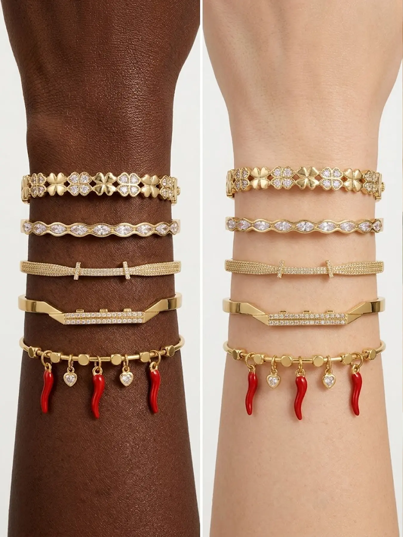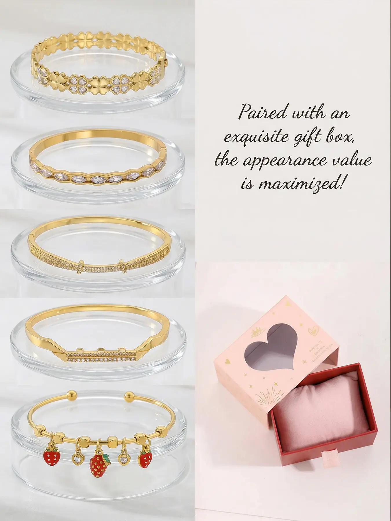 Gold plated five piece bracelet gift box set, cute red strawberries and chili peppers, durable and non fading, stylish and atmospheric, the first choice for gift giving