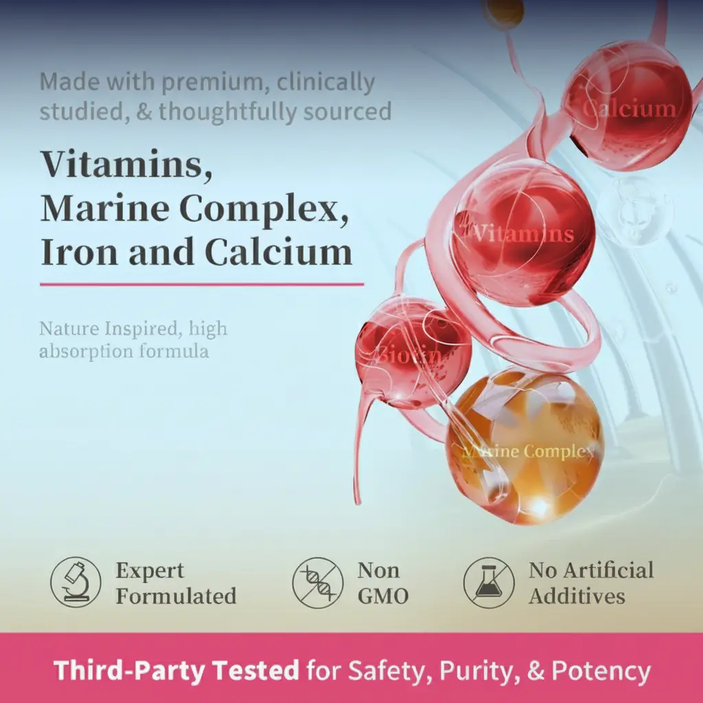 - Biotin (5000mcg): The "Beauty Vitamin" that supports keratin production for hair strength.