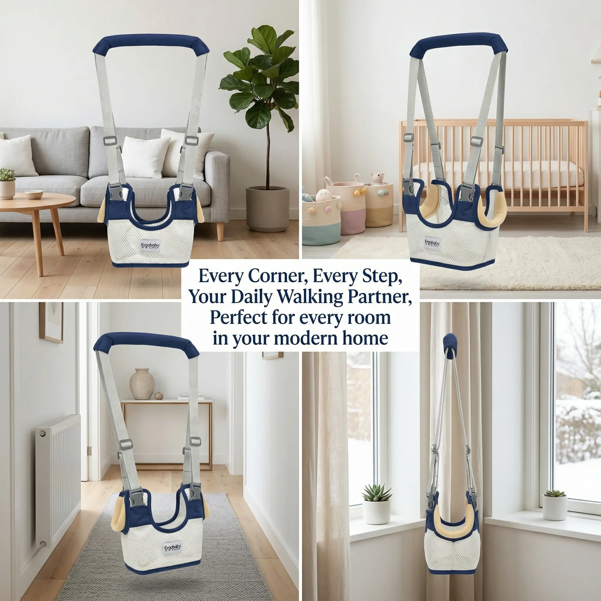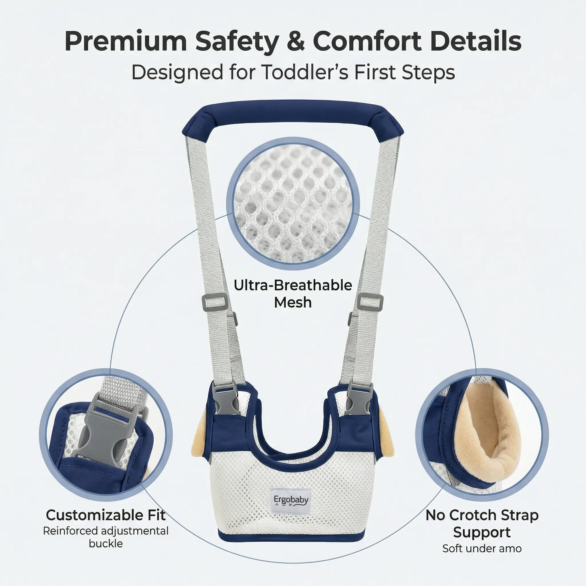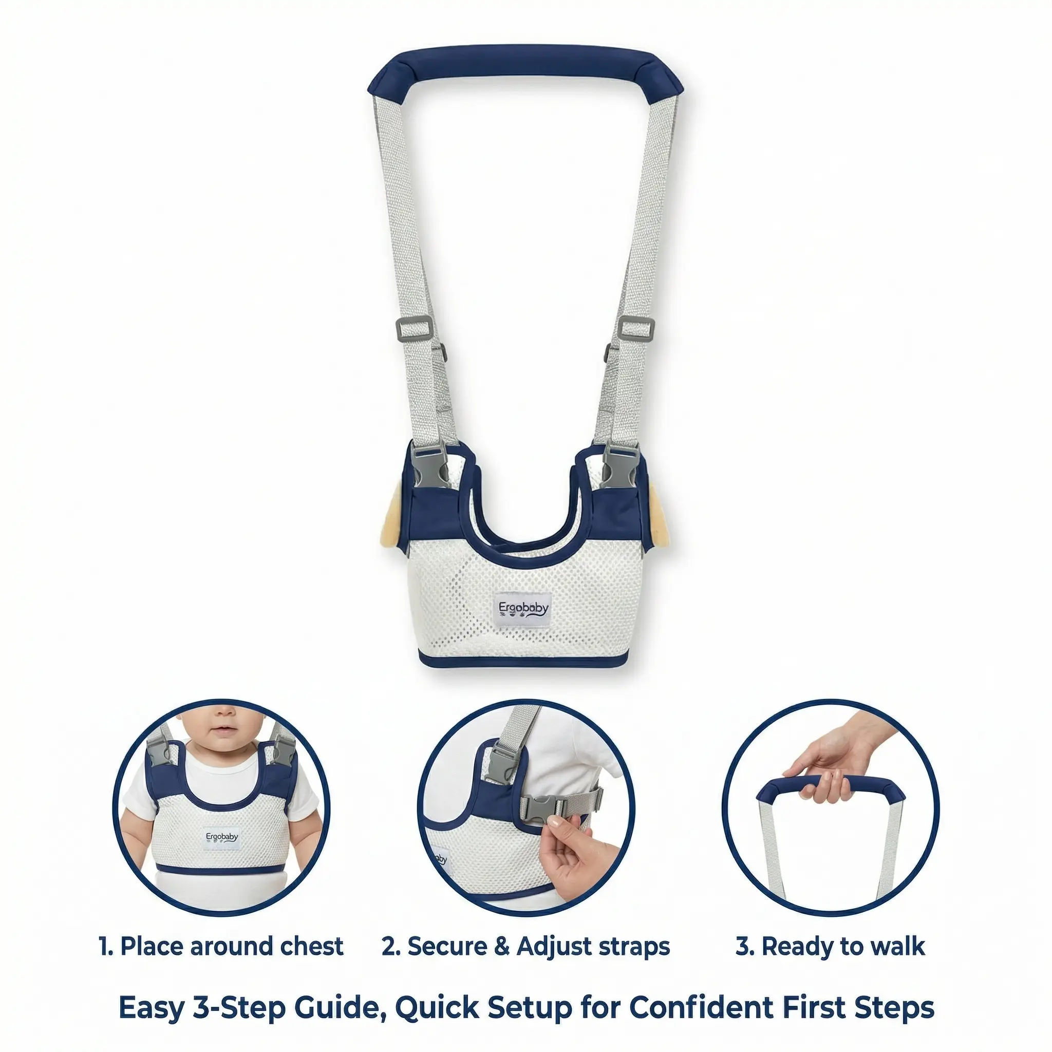Baby Walking Harness — Handheld Walking Aid, Adjustable Toddler Walking Strap, Assists with Standing and Walking, Suitable for Babies Aged 9–24 Months (Dark Blue) Comfortable Support