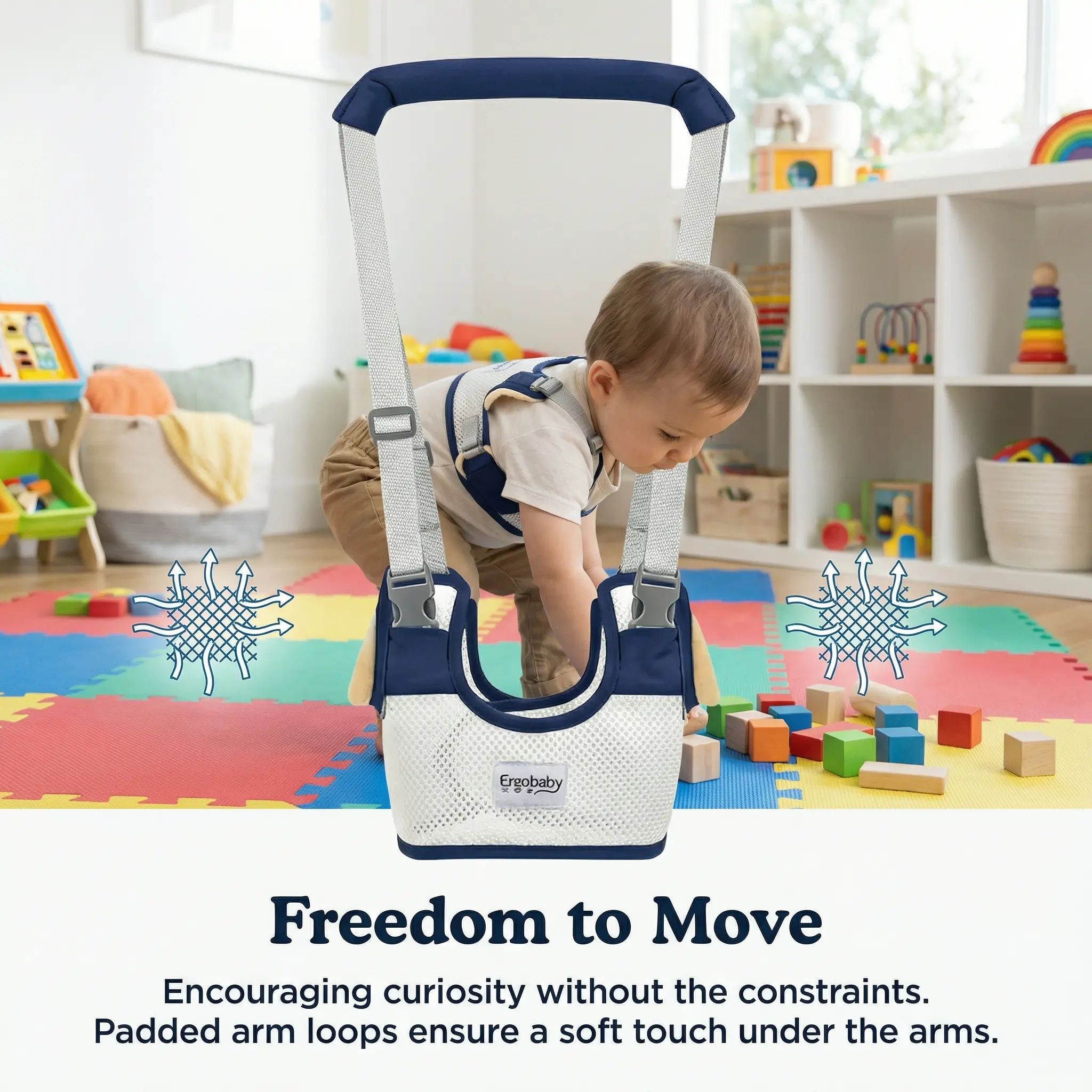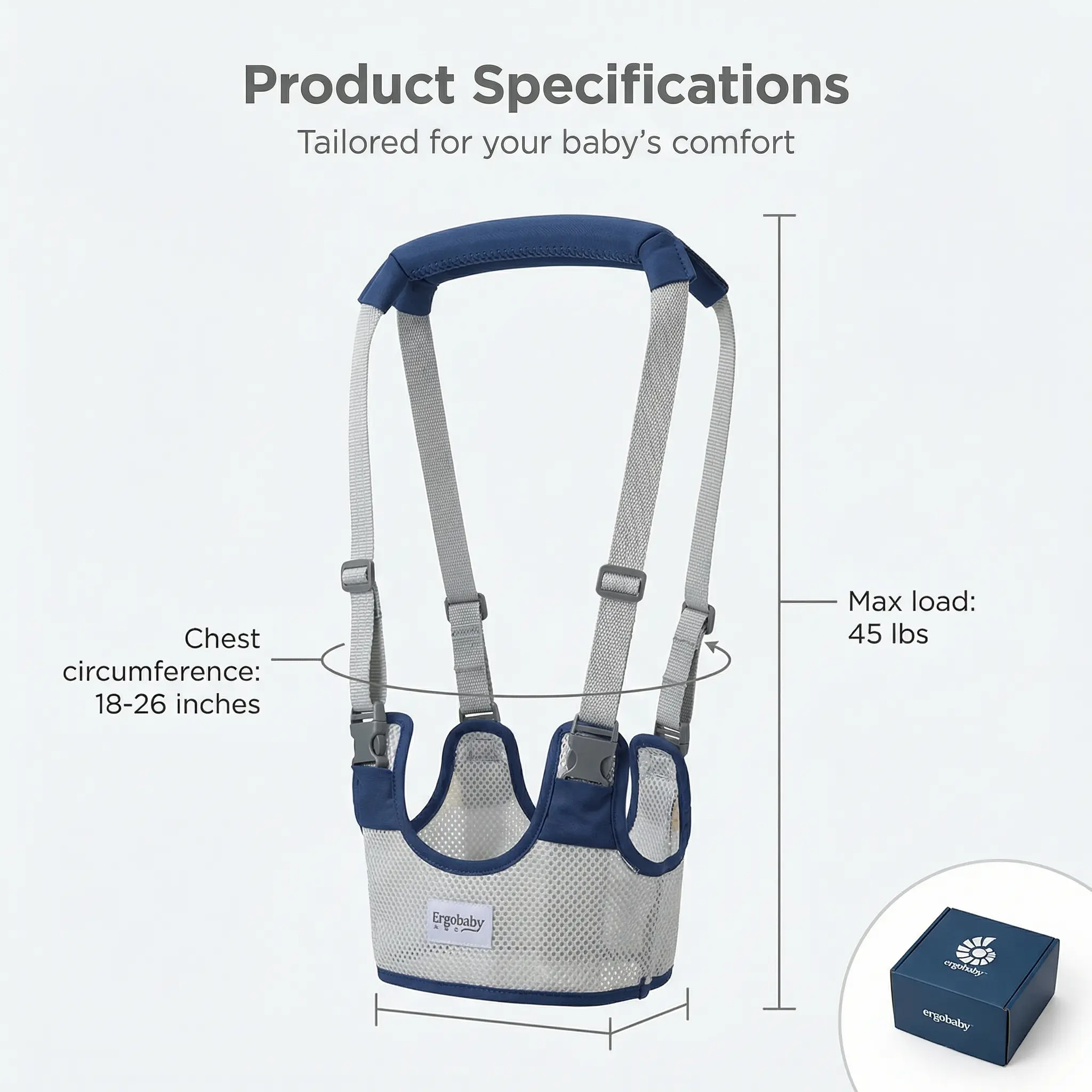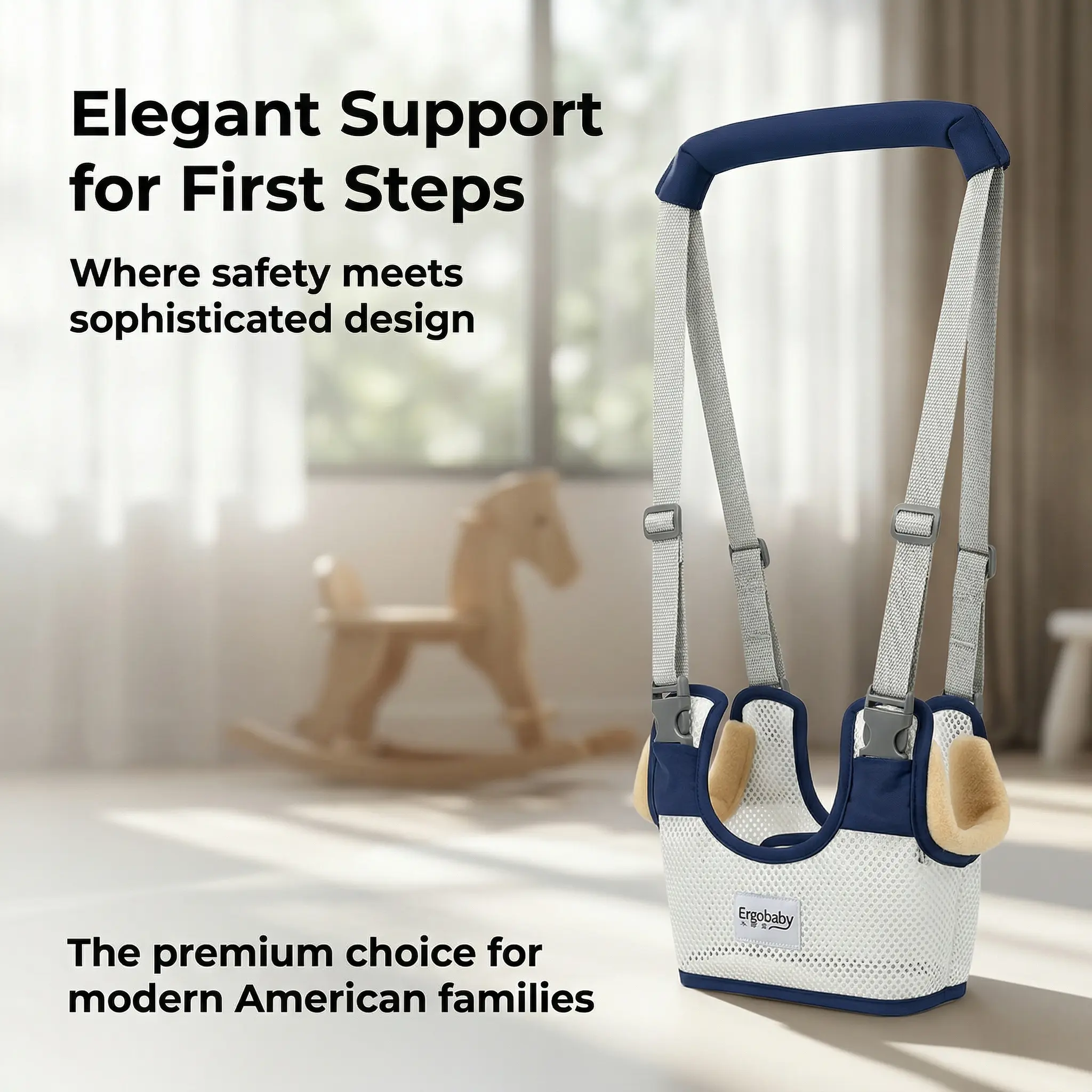 Baby Walking Harness — Handheld Walking Aid, Adjustable Toddler Walking Strap, Assists with Standing and Walking, Suitable for Babies Aged 9–24 Months (Dark Blue) Comfortable Support