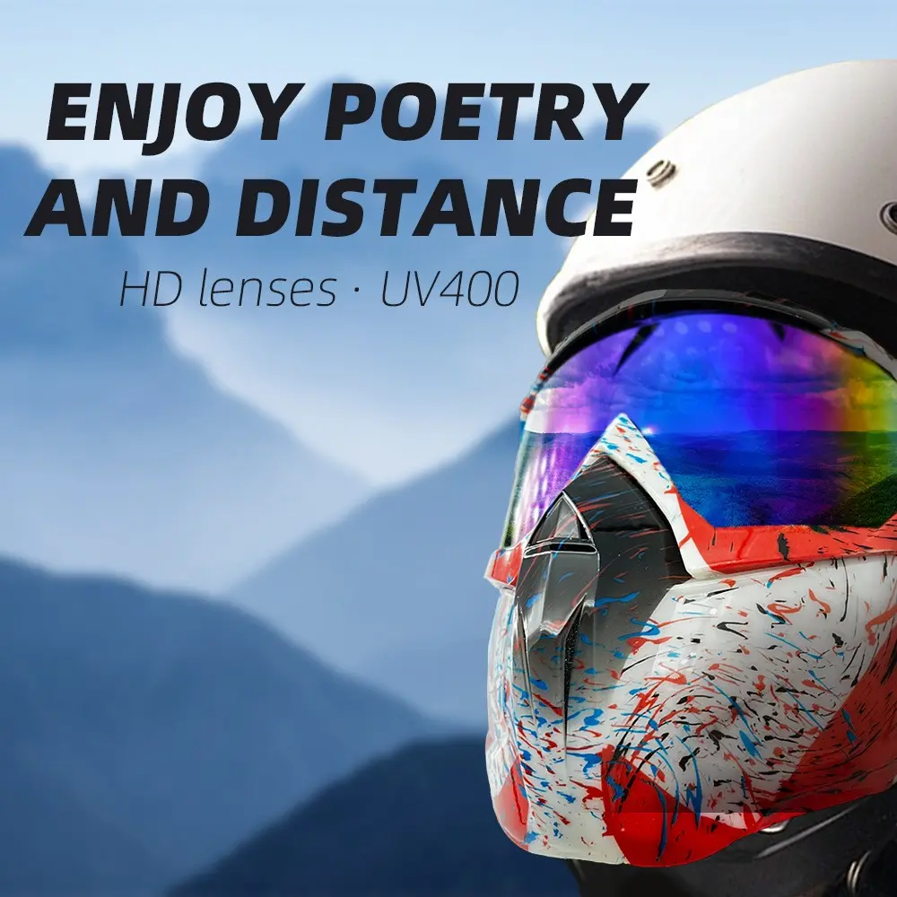 Vintage Motorcycle Windshield Helmet Goggles, Mountain Bike Off-Road Riding Sunglasses, Anti-Wind, Fits Prescription Glasses, Sports Style Protective Gear