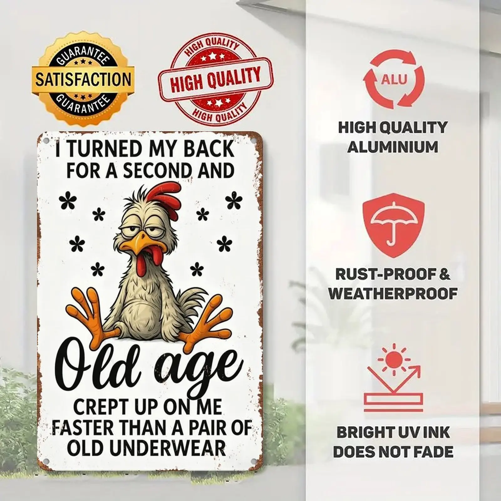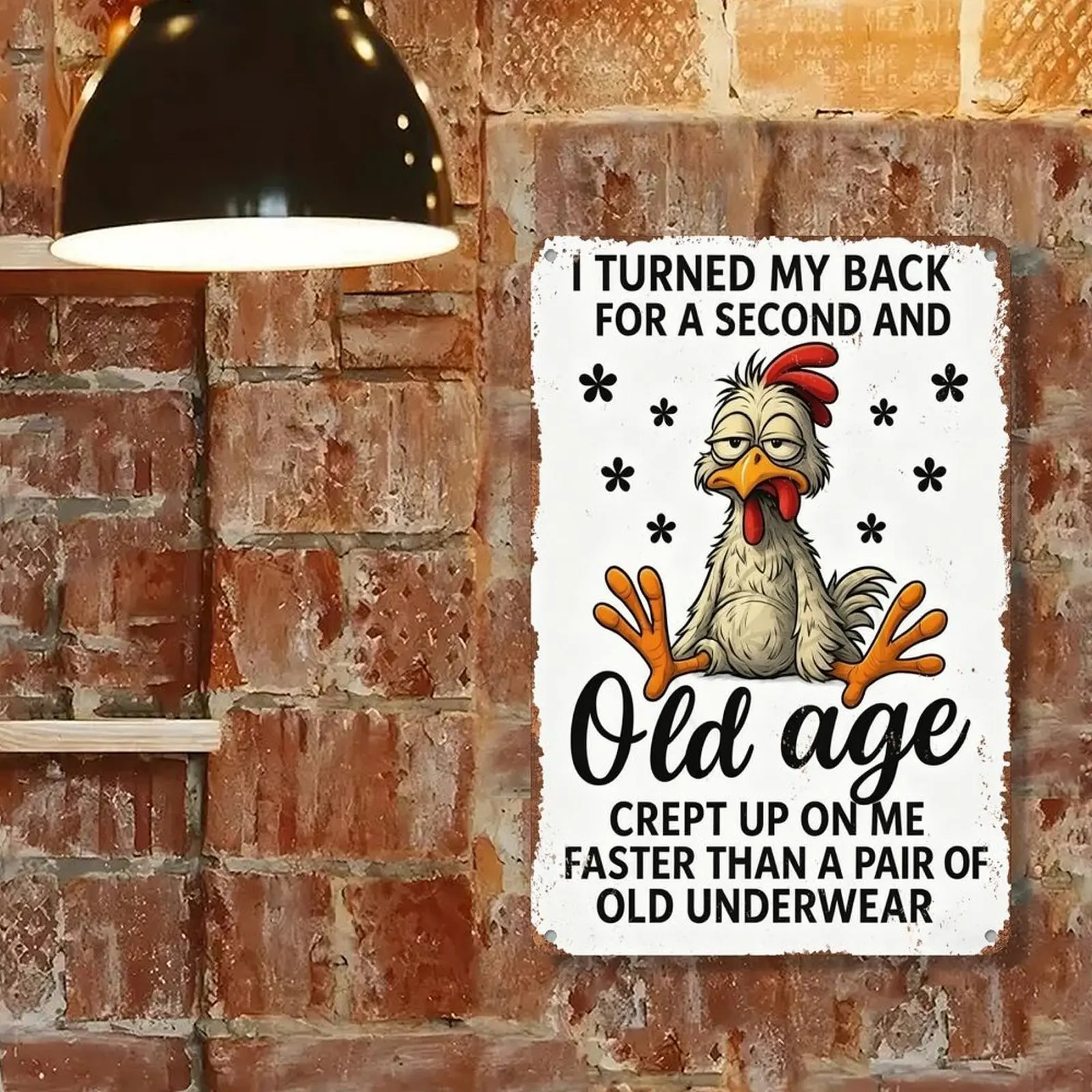 I Turned My Back For A Second Old Age Rooster Metal Sign - 8x12 Inch Retro Aluminum Wall Decor for Kitchen, Living Room, Man Cave - Gift for Seniors & Chicken Lovers