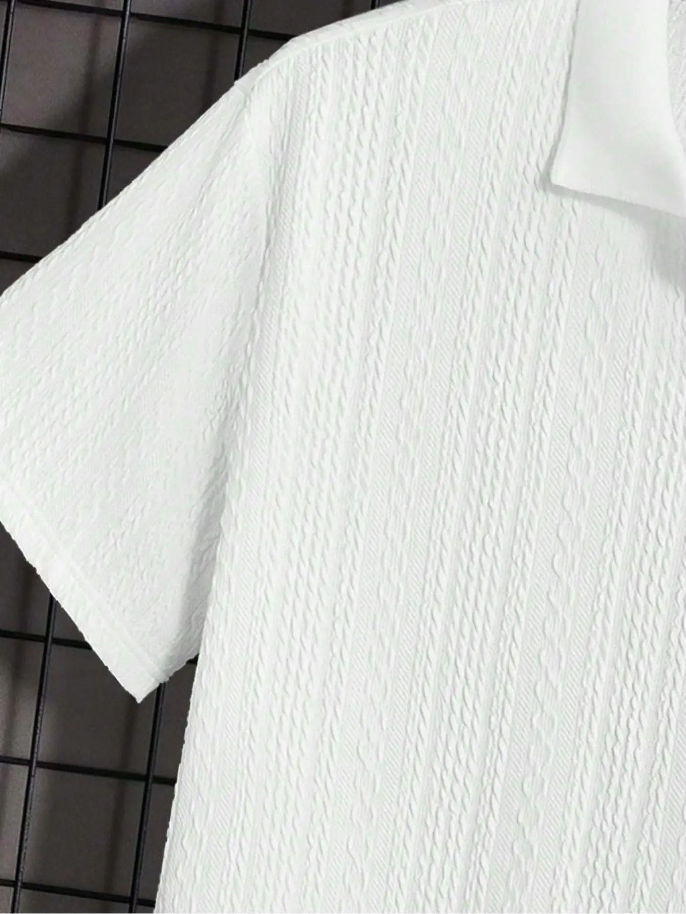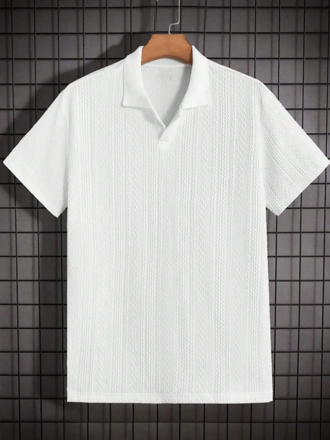 Men's Casual Short Sleeve T-Shirt, Textured Fabric, Ribbed Polo Top, Summer Solid Color Fashion, Single Piece