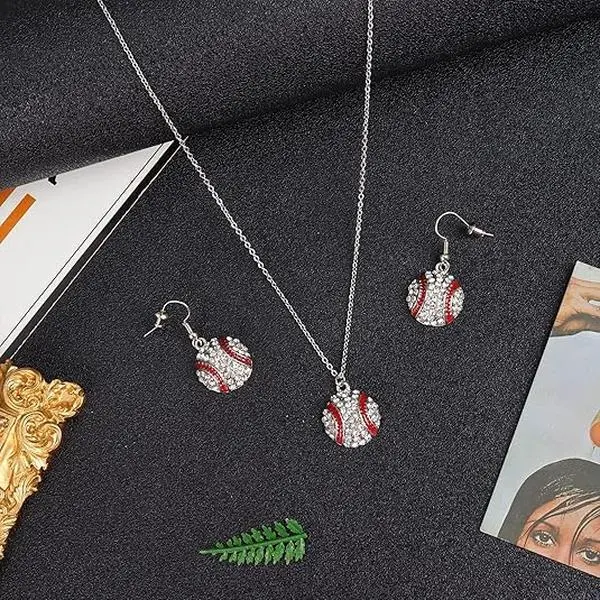 BASEBALL NECKLACE EARRING SET: This baseball earring set contains a pendant with baseball elements and a pair of earrings. This baseball jewelry uses diamond-encrusted technology and uses high-quality alloy, which is more suitable for you to wear.