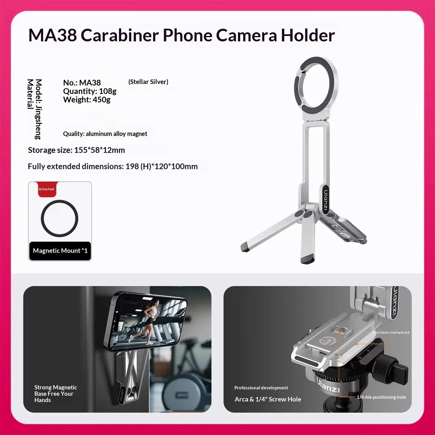 Ulanzi MA38 Mobile Phone Photography Stand Selfie Stick Double Magnetic Overhead Tripod for Samsung Xiaomi Huawei iPhone Vivo