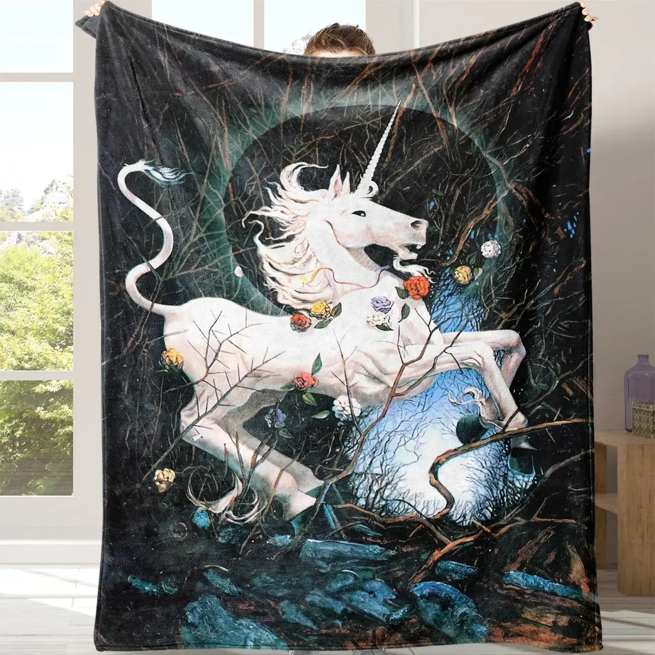 Unicorn Pattern Flannel Blanket, 1 Count - soft, warm throw blanket with storage bag; soft, comfortable blanket; accessory blanket for air‑conditioned rooms; warm nap blanket for home office
