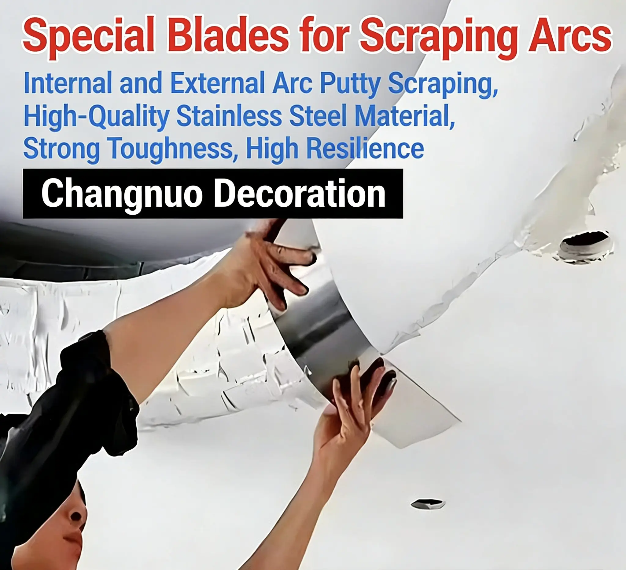 This stainless steel arc putty knife is a game-changer for curved surface finishing. Its ultra-thin (0.3mm/0.5mm) flexible blade conforms perfectly to cylinders, domes, and arched ceilings, delivering a seamless, professional finish in a single pass . Say goodbye to streaks, uneven layers, and time-consuming rework—this tool drastically cuts down on sanding and touch-ups.