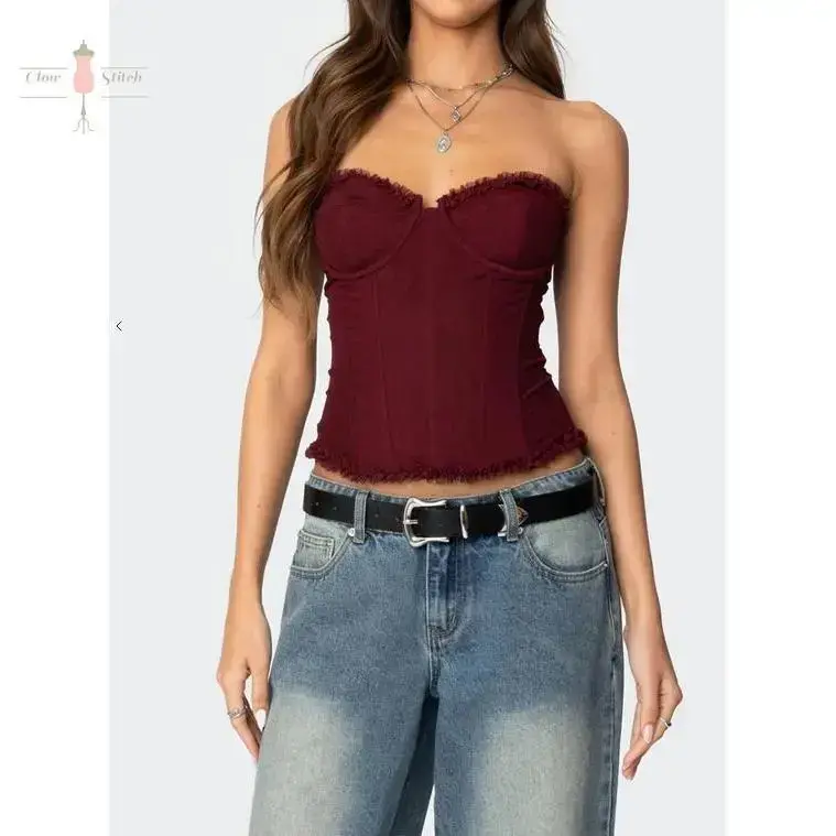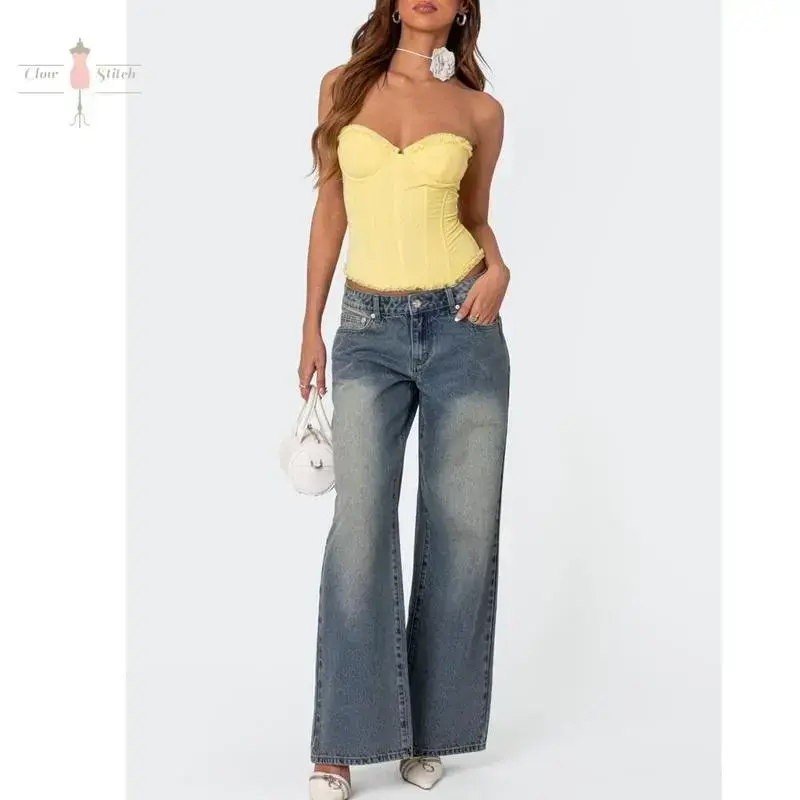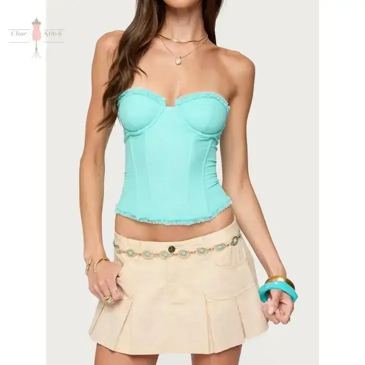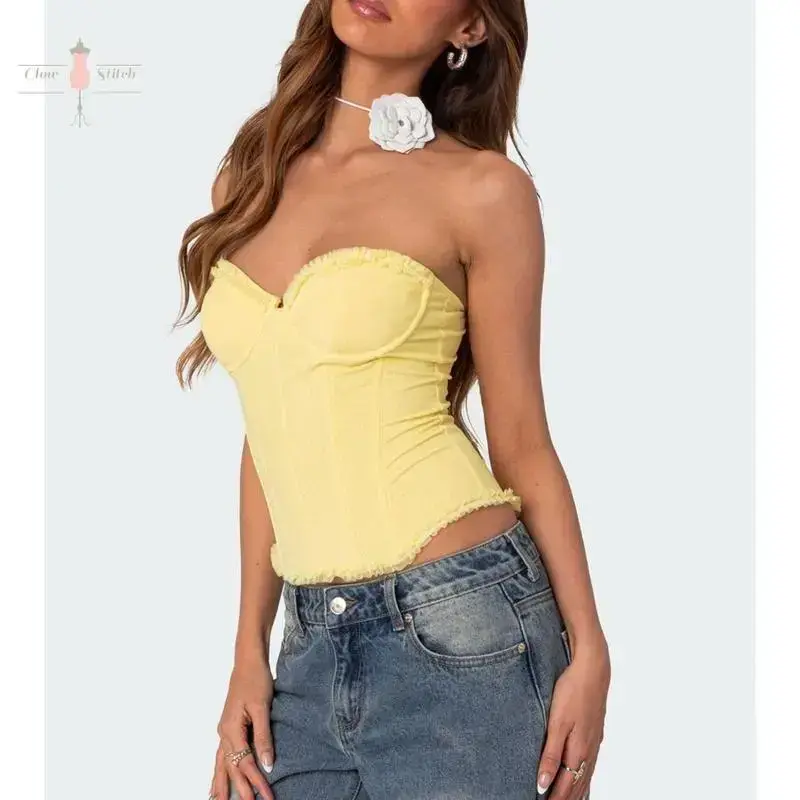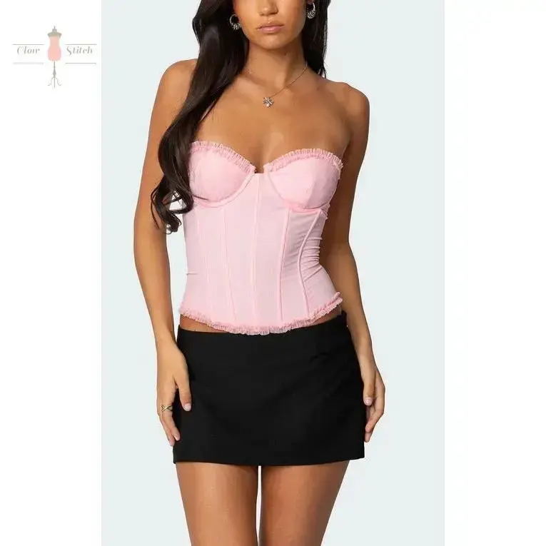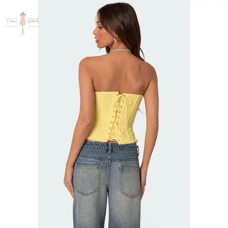 Women Y2k Bustier Corset Tops Sexy Strapless Lace Up Boned Mesh Bustier Tops Going Out Overbust Corset Top Elevate your fall wardrobe with our trendy and versatile crop tops! Made from 100% Polyester, these tops are soft, comfortable, and perfect for the autumn season. Available in sizes S, M, and L, our crop tops come in a range of colors including blue, yellow, pink, and wine red.? Size Chart: - S: Bust 32-34 inches, Waist 25-27 inches - M: Bust 34-36 inches, Waist 27-29 inches - L: Bust 36-38 inches, Waist 29-31 inches Whether you're heading out for a day with friends or lounging at home, our crop tops are a must-have addition to your closet. Pair them with jeans for a casual look or a skirt for a night out. Upgrade your style game with our chic crop tops that are both fashionable and affordable. Treat yourself to a little luxury this fall without breaking the bank!