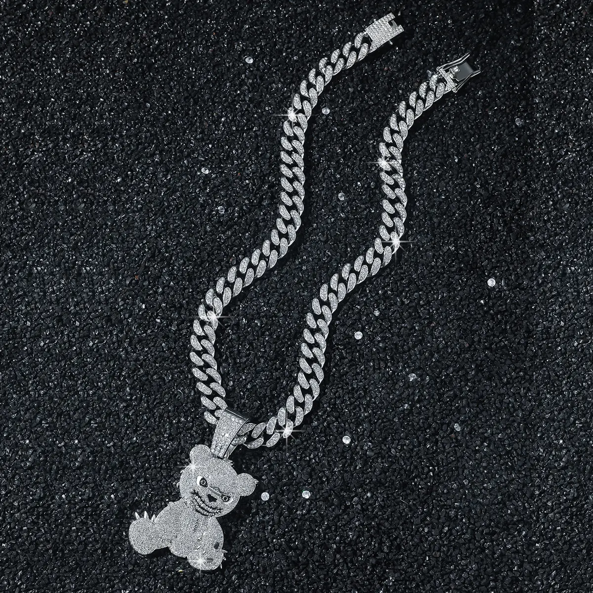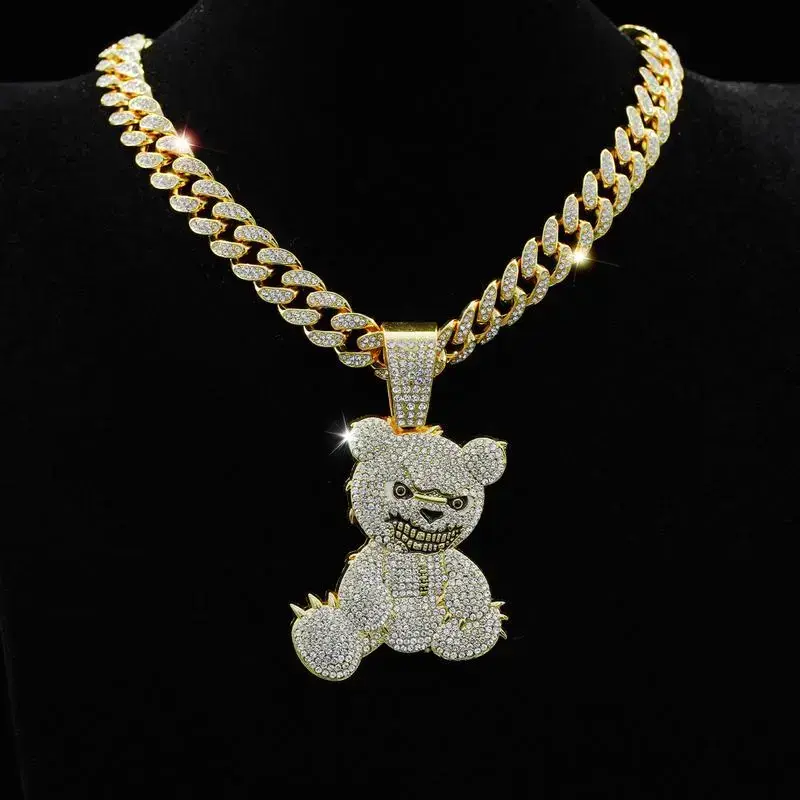 Fashion Grim Reaper Bear Necklace Elevate your style with the Fashion Grim Reaper Bear Necklace, a perfect blend of hip hop and Cuban culture. This unique piece features a full diamond Cuban chain, making it a standout accessory for any outfit. Key Features: Fashion Grim Reaper Bear Design: A striking and eye-catching design that adds a bold touch to your look. Full Diamond Cuban Chain: A luxurious and elegant accessory that enhances the overall aesthetic of the necklace. Hip Hop Style: A trendy and modern design that reflects your personal style and cultural influences. Make a statement with the Fashion Grim Reaper Bear Necklace, a must-have for those who appreciate a fusion of hip hop and Cuban culture.