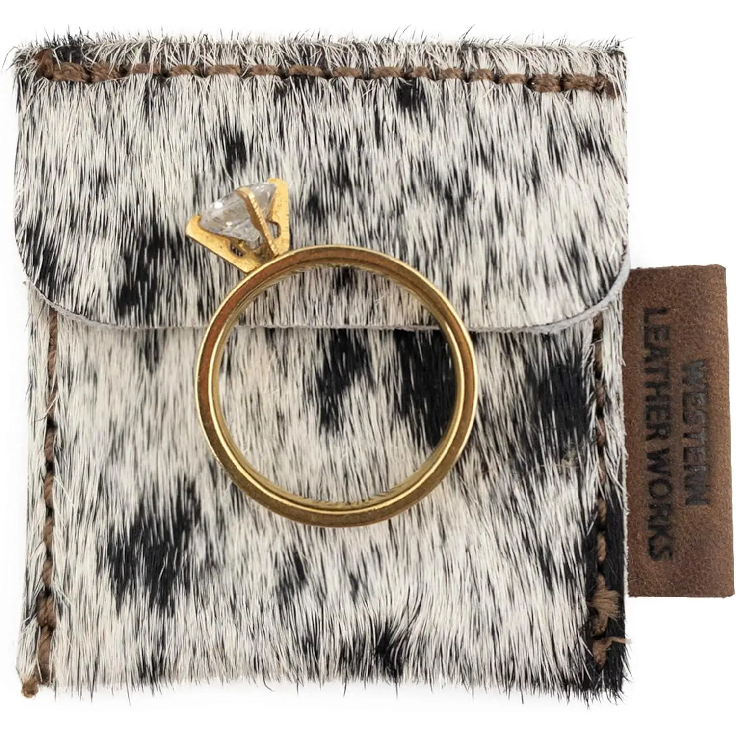 Made from full grain leather, this case offers a soft and attractive look. Ideal for bride and groom jewelry storage, marriage travel, and as a ring bearer. The hair-on-hide design adds a distinctive touch. Soft & Attractive, Artisanal Excellence, Hair-on-Hide.