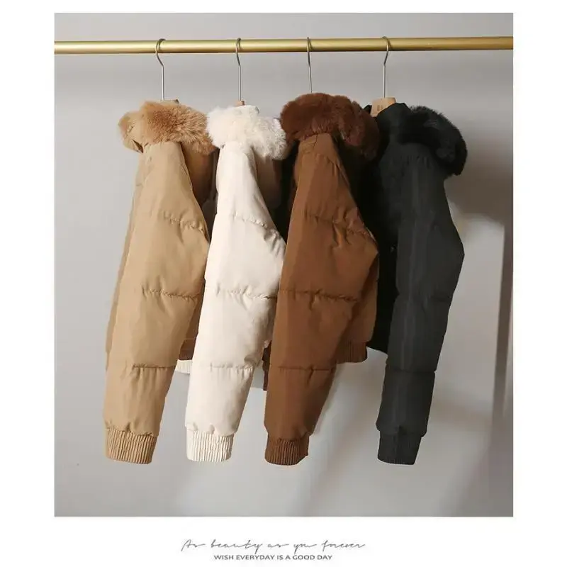Women's Zip Up Pocket Design Shirred Waist Jacket Fuzzy Trim Fleece Lined Hooded Puffer Coat Windproof Jackets