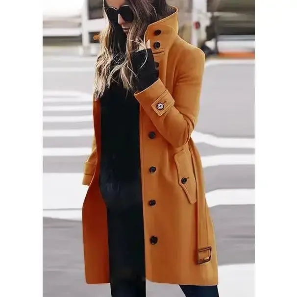 Women's Jacket Autumn Winter Warm Women's Jacket Single-Breasted Turn-Down Collar Single-Breasted Women's New Style