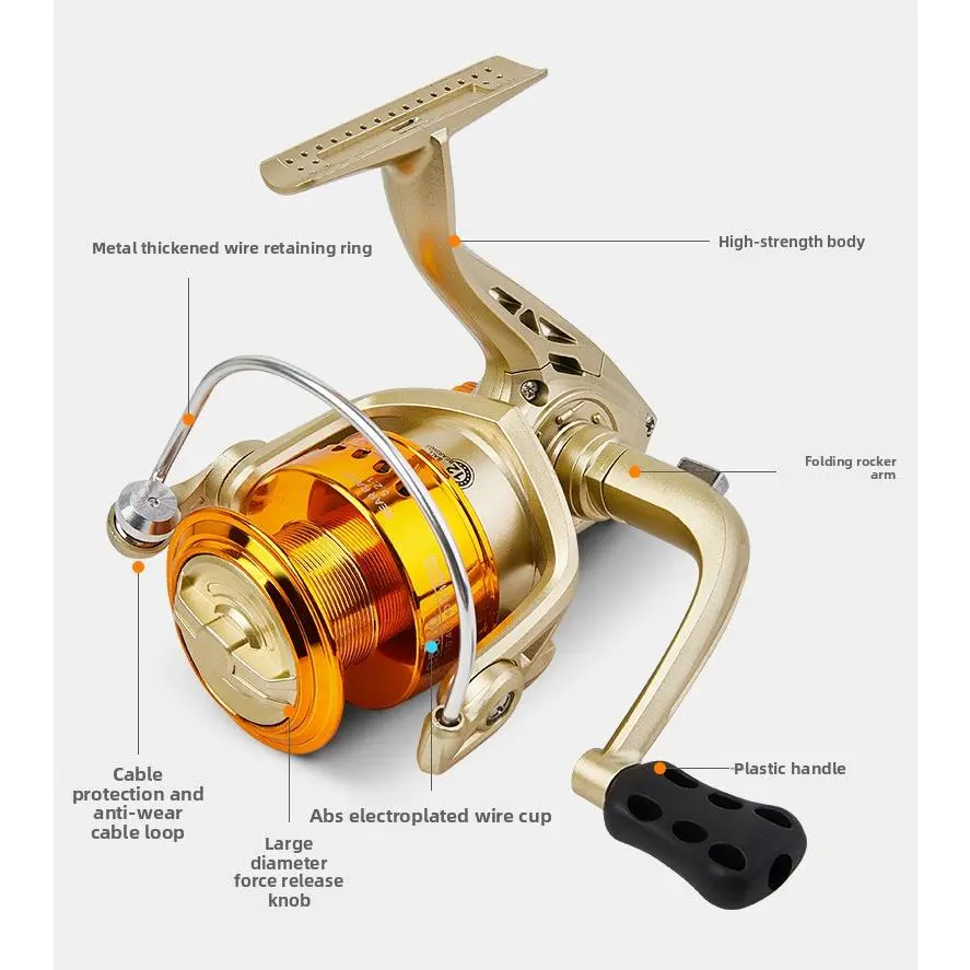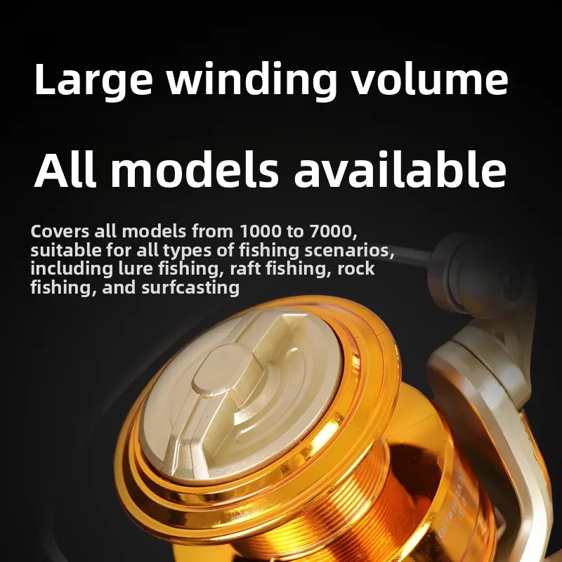 Versatile Spinning Reel, widely applicable for raft fishing, lure fishing, long casting, sea rod casting, anchoring fishing and rock fishing. Made of high-quality durable material, it combines sturdiness and corrosion resistance, suitable for both freshwater and saltwater environments, withstanding long-term heavy use and the strong pull of big game fish. The smooth spool design ensures stable line release and retrieval, reducing line tangles and improving casting efficiency, which is perfect for long-distance casting needs of lure fishing. Equipped with a reliable drag system, it can effectively buffer the sudden pull of fish, prevent line breakage, and enhance the success rate of landing fish. It features a user-friendly design with a comfortable grip, easy to operate for both beginners and professional anglers. Lightweight and portable, it is easy to carry and install on different fishing rods, making it an essential multi-scene fishing reel for all anglers.