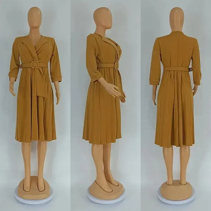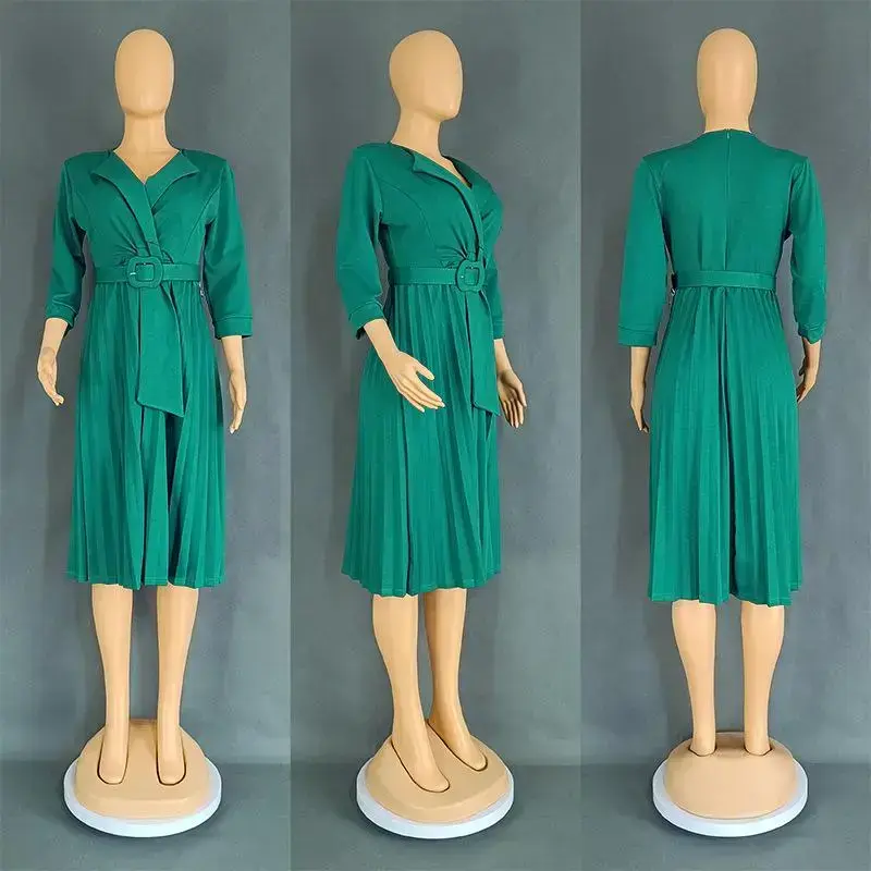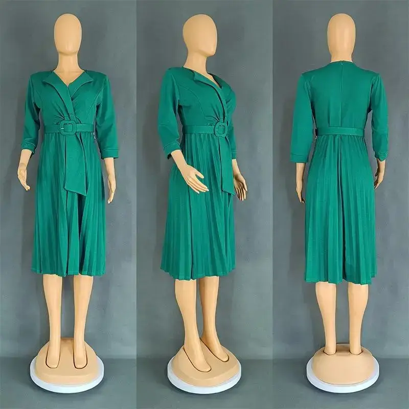 Fabric:95%polyester+5%spandex;breathable,soft,skin-friendly,suitableforyear-roundcasualwear. Features:Lapel,sexyV-neck,lace-updetail,pleatedflowinghem;three-quartersleeves,shape,slimfit;availableinsizes(suitableascocktaildress). Matching:Pairwithhighheelsoranklebootsforelegance. Occasions:Versatileforweddingguest,cocktailparty,funeral,church,work,semi-formalorcasualevents. Note:Machinewashcoldwithsimilarcolorstopreservecolorandfit.
