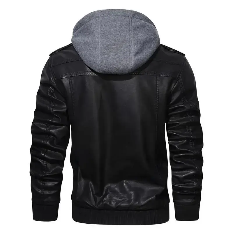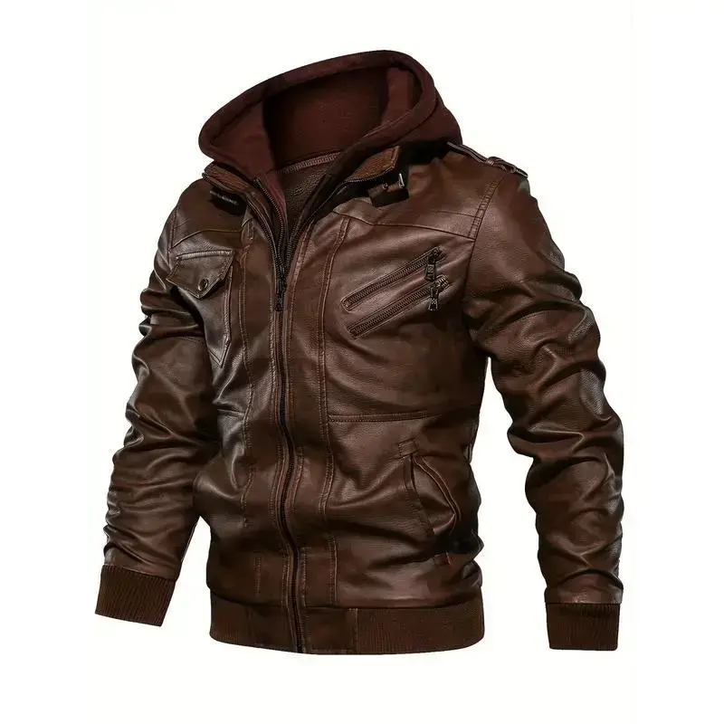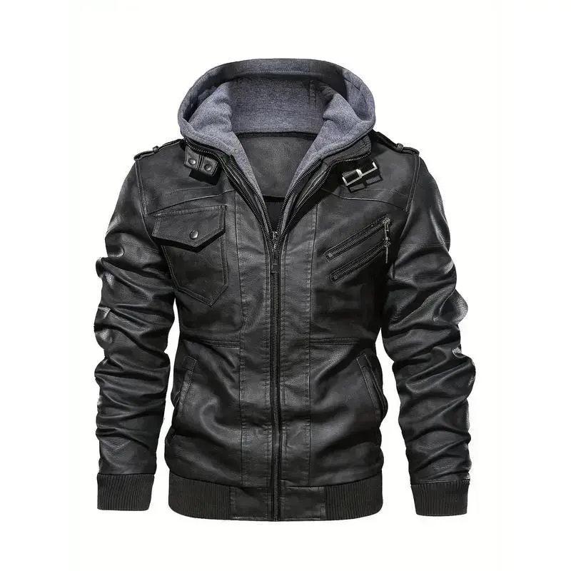 Premium Mens Hooded Leather Jacket - Fashionable Biker Style with Chic Multi Pockets, Durable Soft-shell for Casual Comfort(gift)