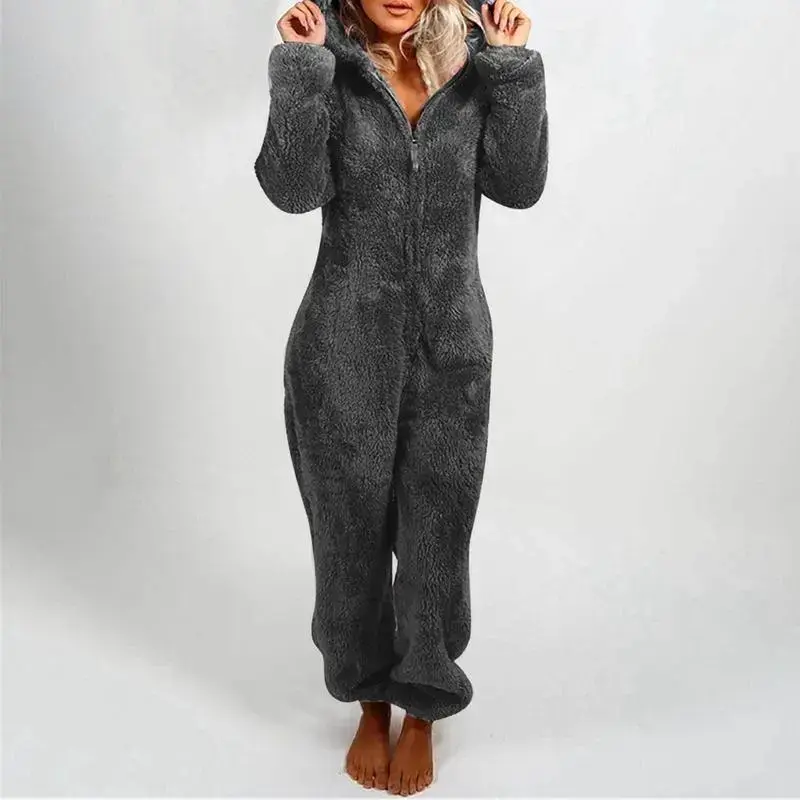 Women White Hooded Pajama Jumpsuit ? Elevate your sleepwear collection with this Women White Hooded Pajama Jumpsuit. It features a long sleeve design, perfect for cozy nights. The zipper adds a modern touch, ensuring easy wear. Ideal for ladies seeking comfort and style in their sleepwear. This jumpsuit is a versatile addition to your wardrobe. Key Features Perfect for Ladies This pajama jumpsuit is tailored for women who value both style and comfort. It's a great choice for those looking to enhance their sleepwear options. Enjoy the convenience of a jumpsuit with the added warmth of a hooded design.