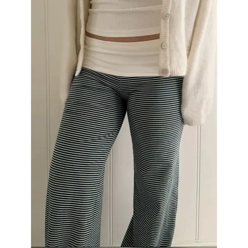 ��Unique Striped Pattern��: Features a distinctive stripe design that sets it apart from typical pants, adding a trendy touch to your wardrobe. ��Loose Fit��: Created with a loose fit to ensure comfortable wear without restrictions, suitable for all-day leisure activities. ��Low Waist Design��: Constructed with a low waist style that enhances the silhouette while offering a modern and relaxed profile. ��Dressy Knit Fabric��: Made from a soft knit material that drapes beautifully, providing a relaxed fit without compromising on style. ��Adjustable Drawstring��: Equipped with a convenient drawstring for a customizable fit, allowing you to adjust as needed for comfort.