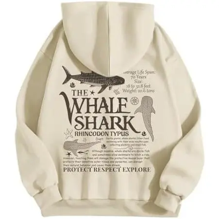 【Unique Print】: Features an eye-catching ocean life print with whales and sharks, making it stand out from typical loungewear. 【Cozy Fabric】: Crafted from thick knit fabric, providing a warm and cozy feel for cooler weather during all seasons. 【Loose Fit】: Designed with a loose-fitting silhouette to ensure ease of movement, perfect for relaxing at home or outings. 【Functional Pockets】: Equipped with practical drawstring pockets for carrying small essentials, enhancing functionality without sacrificing look. 【Versatile Hood】: The attached hood offers additional warmth and protection against chilly breezes, ideal for casual outings.