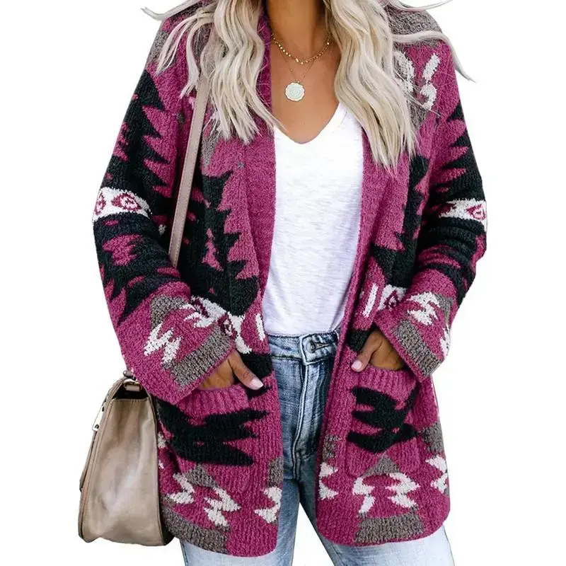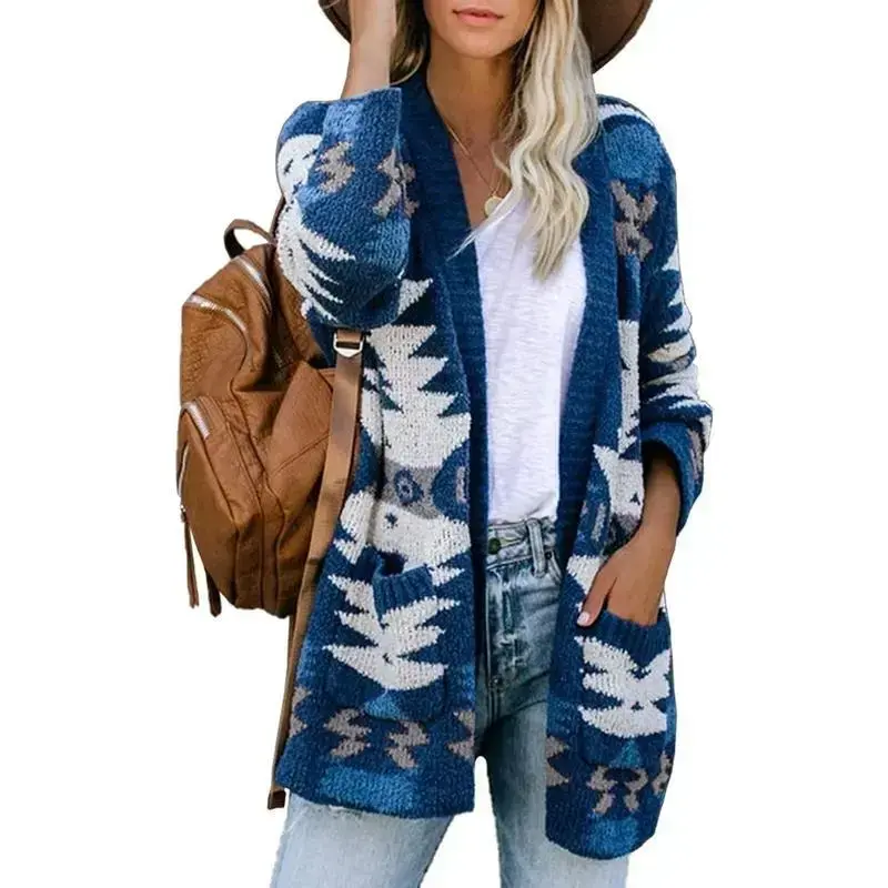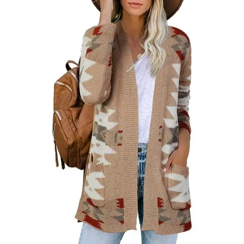 Women Boho Cardigan Aztec Open Front Loose Slouchy Sweaters Tribal Long Sleeve Knitted Christmas Jacket Coat??gift??