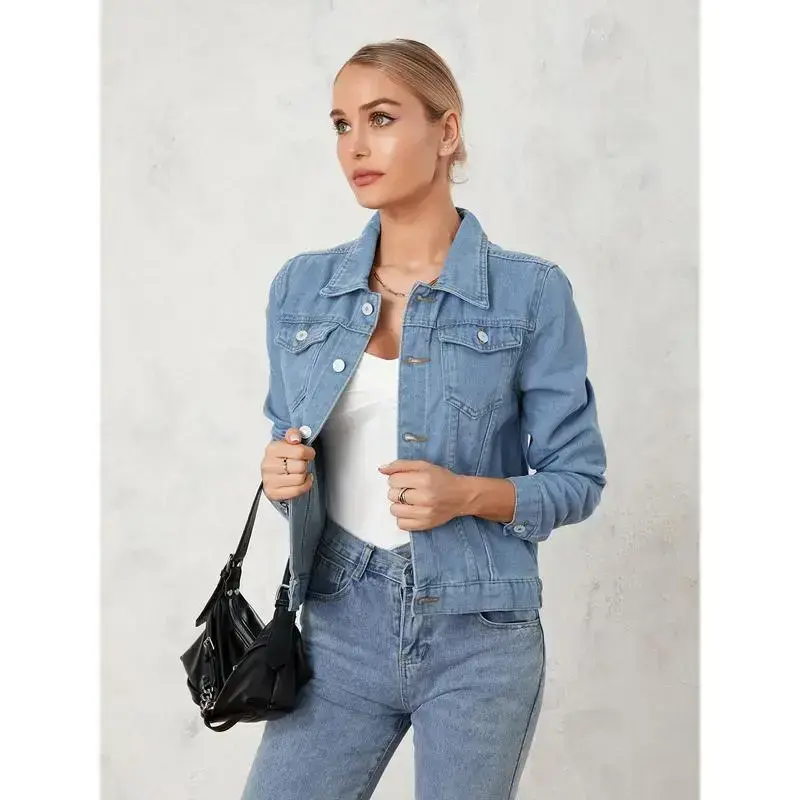 Add a timeless piece to your wardrobe with this Women's Solid Color Denim Jacket. The ?long sleeve button-down design?ensures versatility and warmth, while the ?chest pocket detail?adds a classic and practical touch. The ?solid color?makes it easy to pair with any outfit, whether you're dressing up for a casual outing or keeping it simple for everyday wear. Lightweight and durable, this denim jacket is perfect for spring, summer, or fall. Pair it with t-shirts, dresses, or skirts for a chic and effortless look. ? Features: --?Basic denim jacket suits for everyday wear. Ideal companion for autumn season. -- It is a great gift for girlfriend, mother, wife or friends. -- Please Refer to The Size Chart Below Before Ordering. ? Size(cm) S Length: 54 Bust: 95 Sleeve: 58 Shoulder: 41 M Length: 56 Bust: 100 Sleeve: 59 Shoulder: 42 L Length: 58 Bust: 105 Sleeve: 60 Shoulder: 43 XL Length: 60 Bust: 110 Sleeve: 61 Shoulder: 44 XXL Length: 62 Bust: 115 Sleeve: 62 Shoulder: 45 ? Size(inch) S Length: 21.26 Bust: 37.40 Sleeve: 22.83 Shoulder: 16.14 M Length: 22.05 Bust: 39.37 Sleeve: 23.23 Shoulder: 16.54 L Length: 22.83 Bust: 41.34 Sleeve: 23.62 Shoulder: 16.93 XL Length: 23.62 Bust: 43.31 Sleeve: 24.02 Shoulder: 17.32 XXL Length: 24.41 Bust: 45.28 Sleeve: 24.41 Shoulder: 17.72 ? Specification:? Material: Cotton Blend Color: Multi-color Type: Casual Applicable gender: Female Applicable occasion: Indoors & Outdoors ? Package?Included 1?X Jacket ? Promise If the product has any quality problems, please feel free to contact us, we will help you solve the problem as quickly as possible.