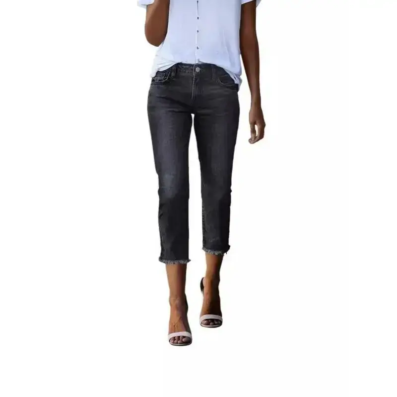 Jean Capri Pants for Women High Waisted Ripped Skinny Jeans Stretchy Denim Capris Cropped Jeggings with Pockets
