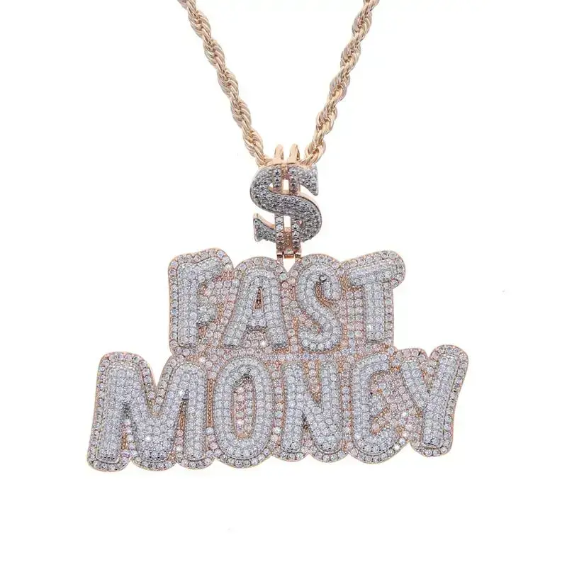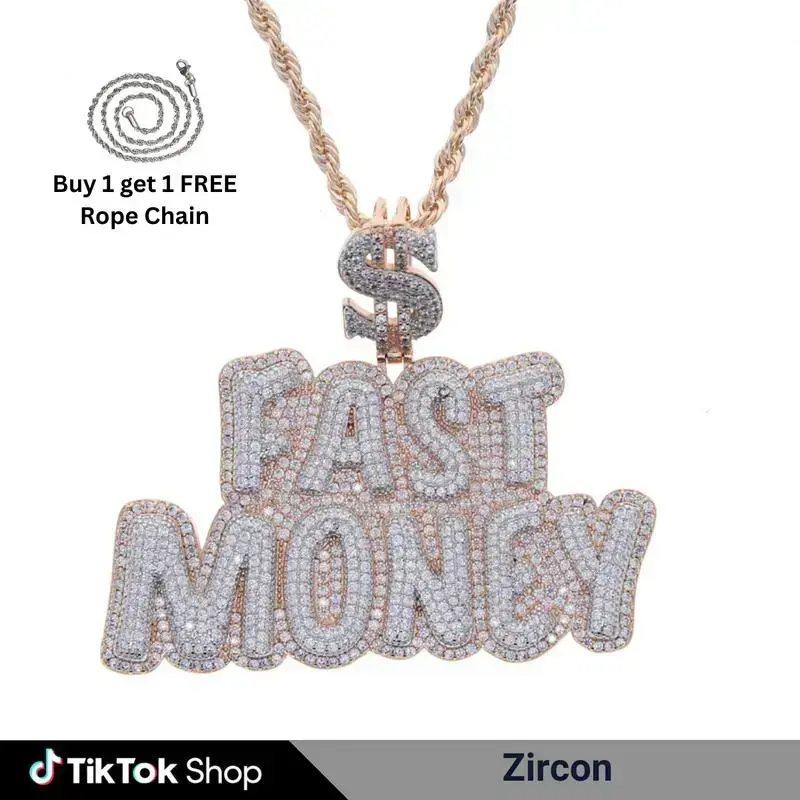 Trendy Hip Hop Iced Out Zirconia Fast Money Pendant Stainless Steel Rope Chain for Unisex Fashion Jewelry Accessory for Casual Wear