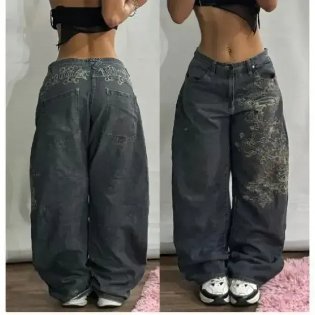 Y2K Harajuku Hip-hop Vintage Pop Gothic High Waist Wide-leg Pants Trousers Streetwear New Fashion Oversized Print Baggy Jeans