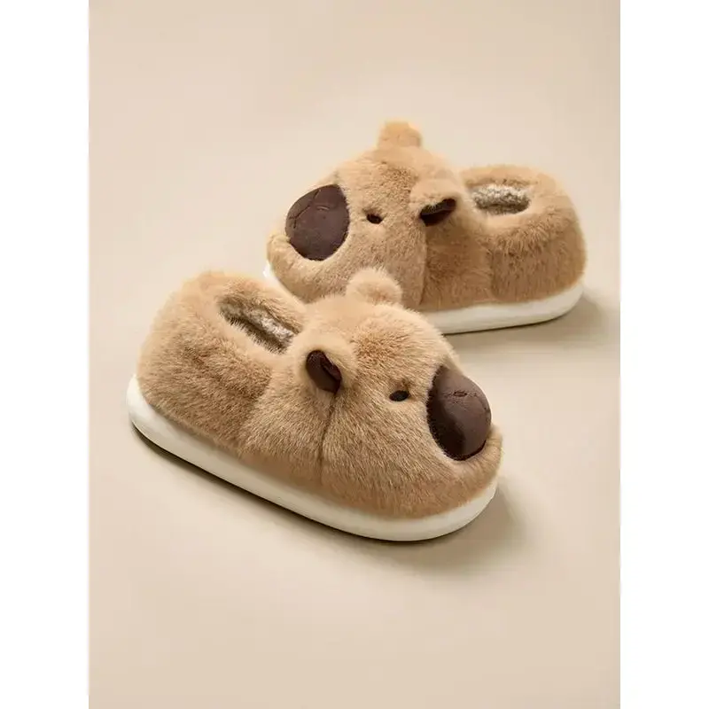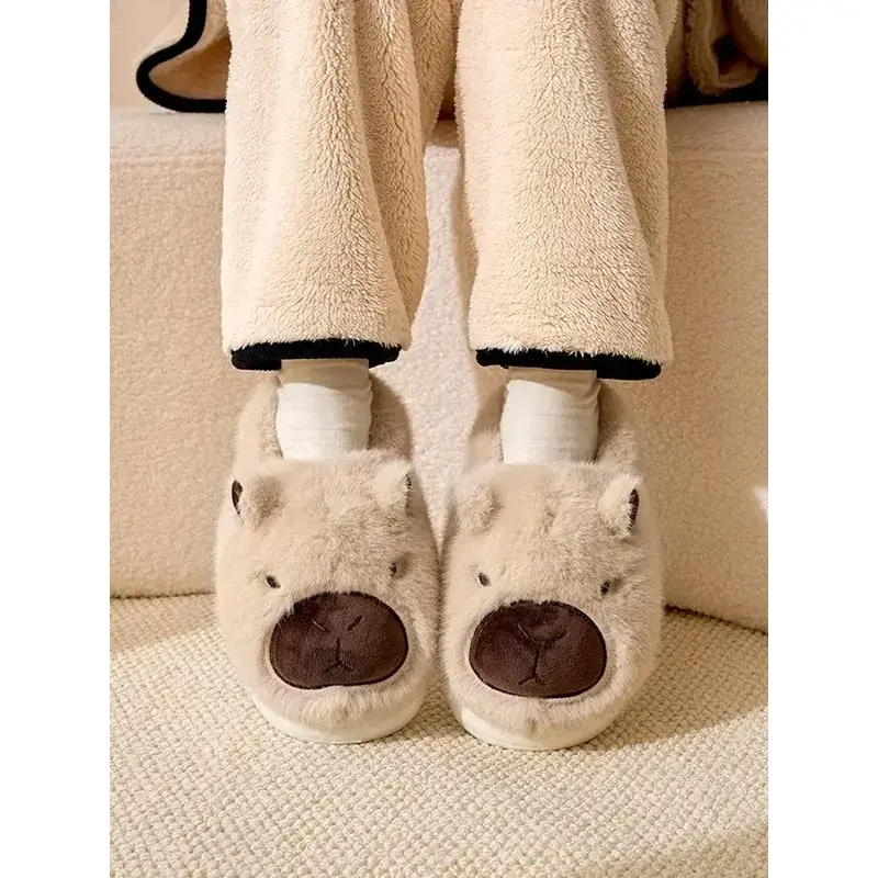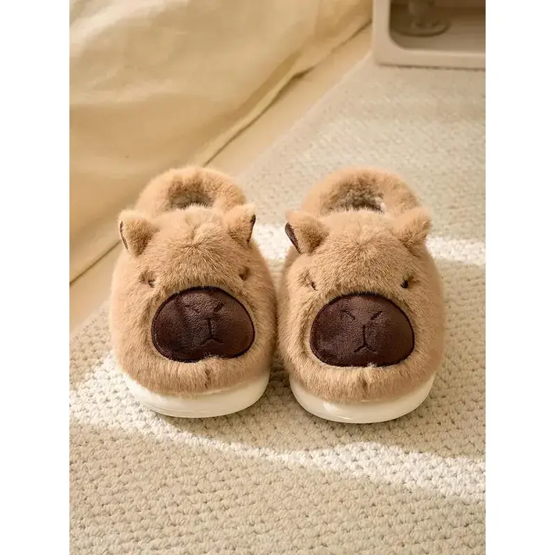 ��Charming Animal Theme��: Featuring an adorable capybara design, these slippers add a playful touch to your home footwear collection, perfect for animal lovers. ��Indoor & Outdoor Use��: Designed for both indoor relaxation and outdoor errands, these slippers provide warmth and support in varied environments during fall and winter. ��Non-slip Safety��: The non-slip sole ensures stability and safety on various surfaces, allowing you to move confidently around your home or yard. ��Soft Textile Lining��: Crafted with a soft textile lining, these slippers envelop your feet in warmth, making them ideal for cool weather conditions. ��Simple & Functional��: With a plain pattern, these slippers blend seamlessly with any home attire, providing a functional yet unobtrusive option for relaxation.
