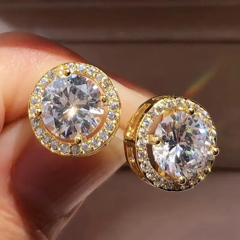 New Round Moissant colt Earrings European and American Gilded 18K Bright White zizmon engagement earrings (gift)