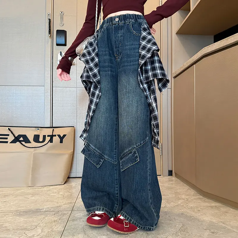 Magic ONESO Mid-low Rise Baggy Jeans Stretchy Wide Leg for Women Distressed Pants Womenswear Bottom 8001 Lady Basic Minimalist Comfortable Denim Tummy Control Curve Hugging Plus Size Regular Size BBL Spring Fashion Daily Outfits