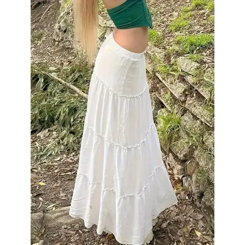 Fit:FittedPattern:PlainWaist Height:Drop WaistSeason:SummerSkirt length: long paragraphWeaving Method:KnittingClothing Type:A lineRegion Of Origin:ChinaWashing Instructions:Machine WashableQuantity Per Pack:Materials:Woven PlainDesign:Frill,Elastic WaistStyle:HolidayComposition:Viscose 70%Nylon 30% [Boho Affinity]: Adorned with a frill trim, this skirt captures the essence of boho style, for beach holidays and relaxed vacation wear. [Ease of Wear]: Featuring an elastic waist with a drop waist design, it offers an easy, fitted wear, enhancing your silhouette effortlessly. [Machine Friendly]: Enjoy the convenience of care with this skirt's machine washable fabric, making maintenance simple and straightforward. [Flowing Form]: Crafted in an A-line shape from knitted material, it allows for a soft, flowing movement, embodying elegance and comfort. [Versatile Simplicity]: Its plain pattern and long length make it a versatile piece, seamlessly fitting into any summer wardrobe for various occasions.