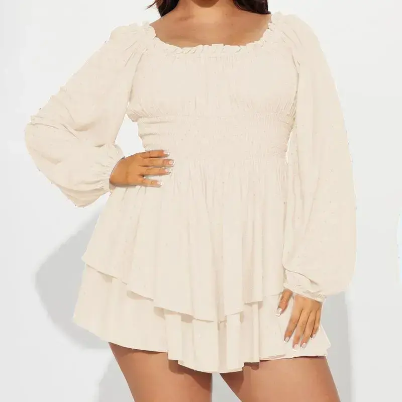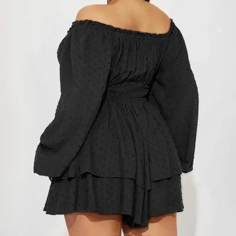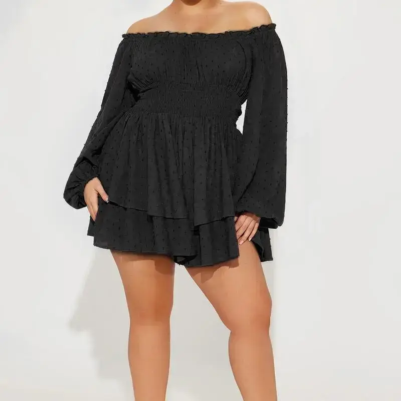 Women Plus Size Rompers Playsuits, Swiss Dot Boat Neck Off Shoulder Long Sleeve, Spring Fall Short Jumpsuits Streetwear, Ladies Dress for Indoor Outdoor Wear, Ladies Clothes for Daily Wear??gift??(gift)